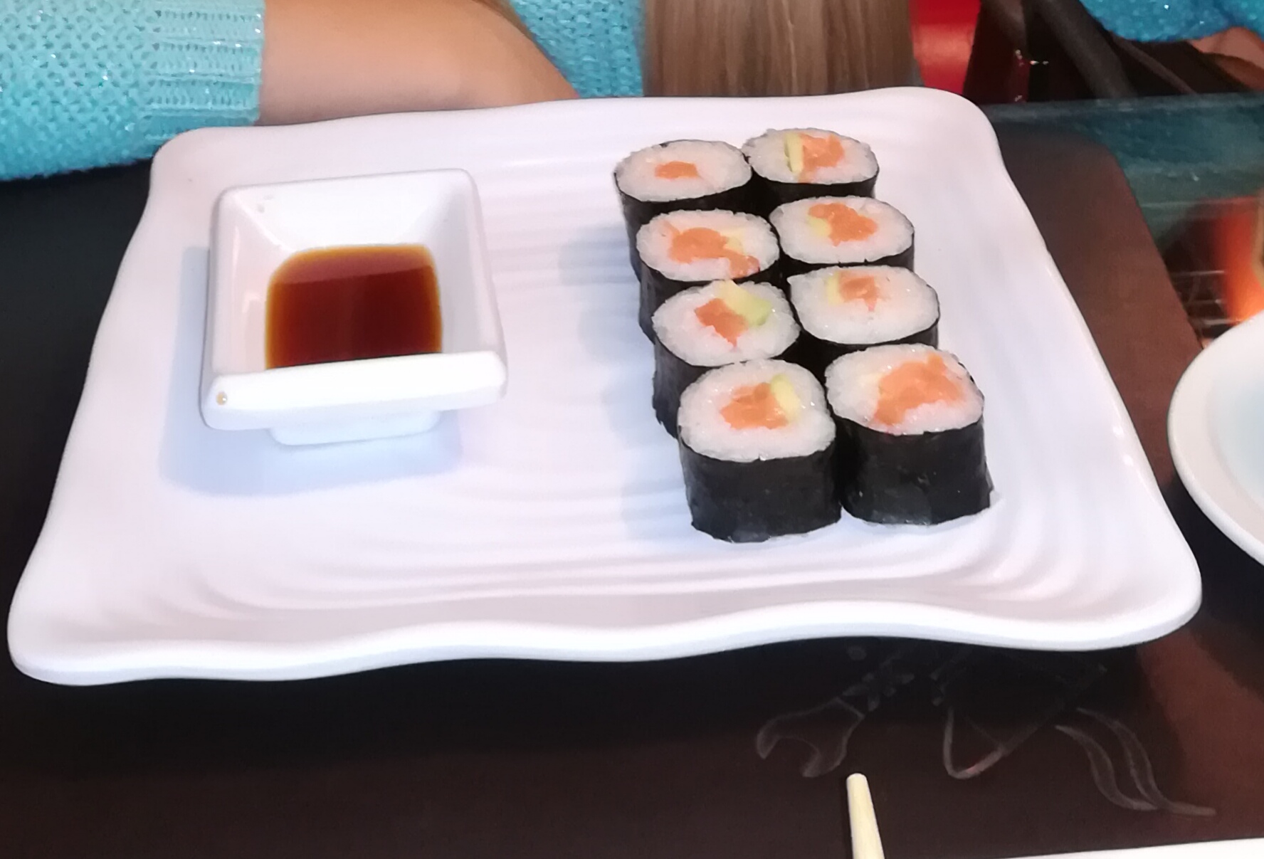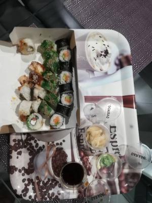 Состав: угорь копченый,сыр сливочный, огурец, рис, нори, соус Терияки.