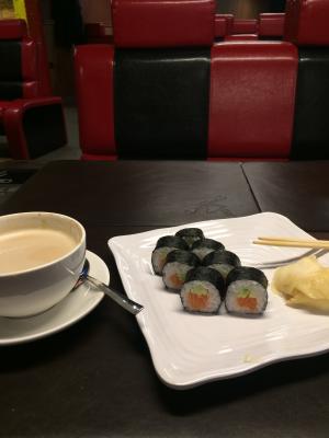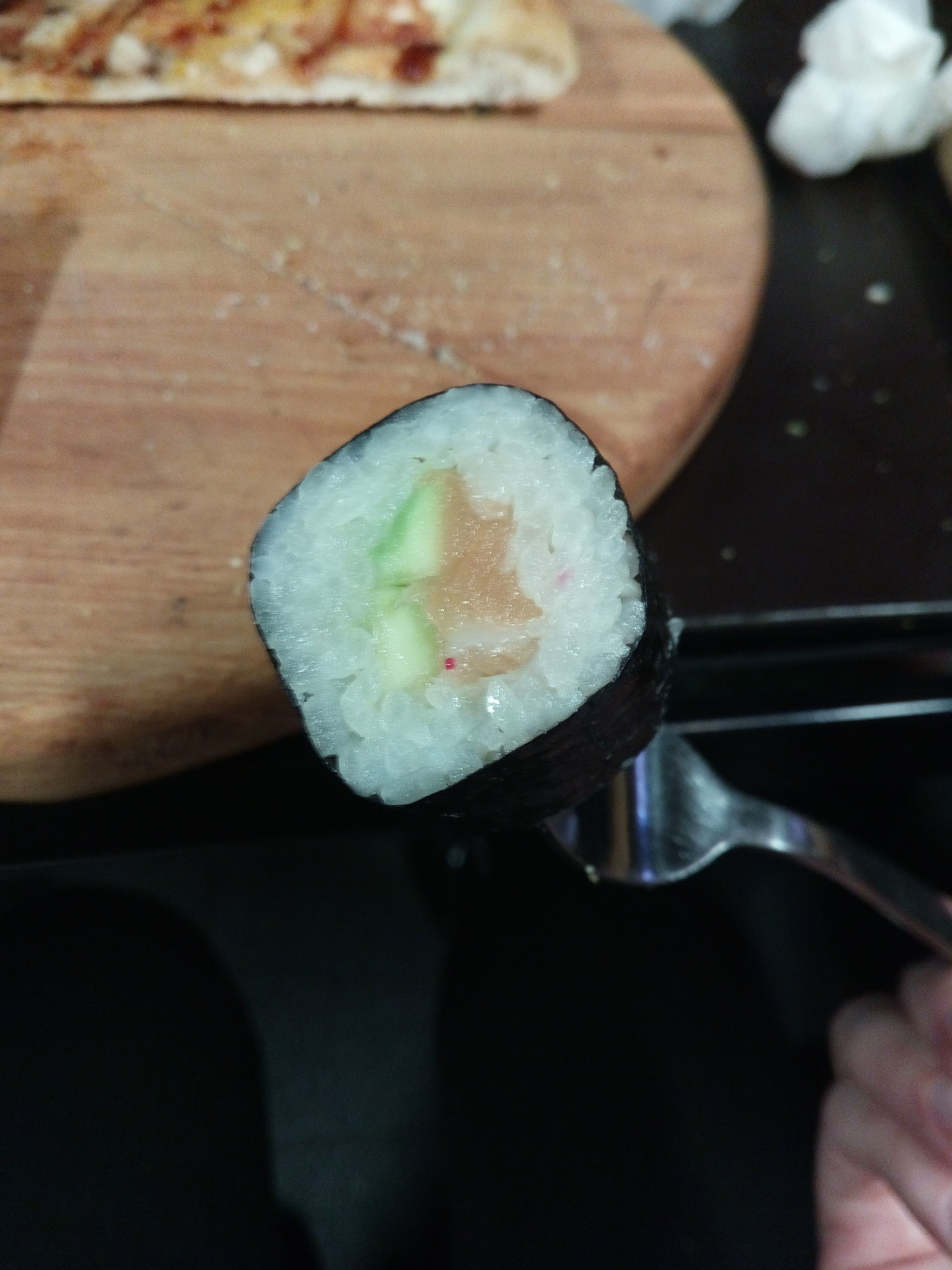 Состав: форель копченая, огурец, сливочный сыр, рис, нори.