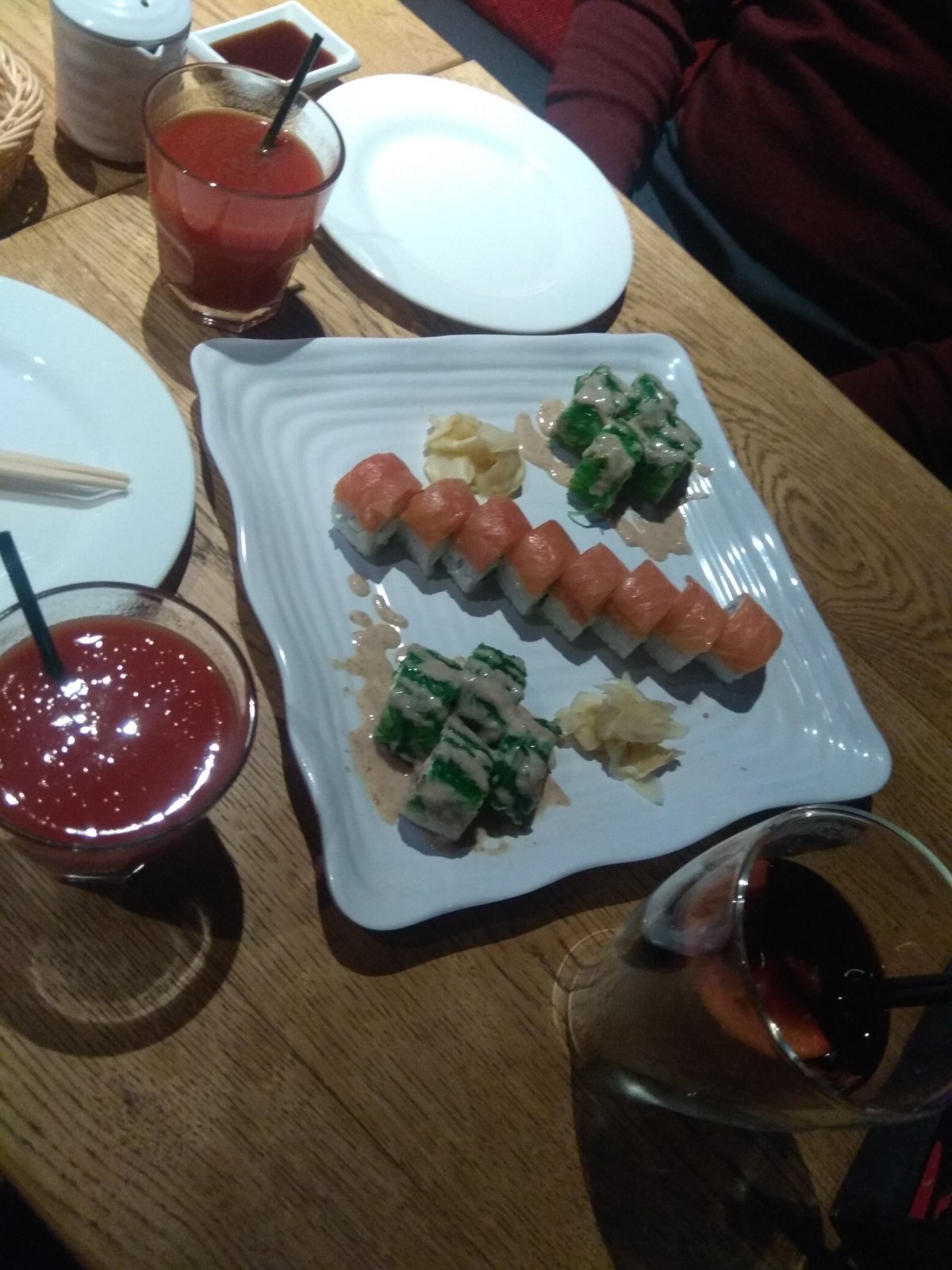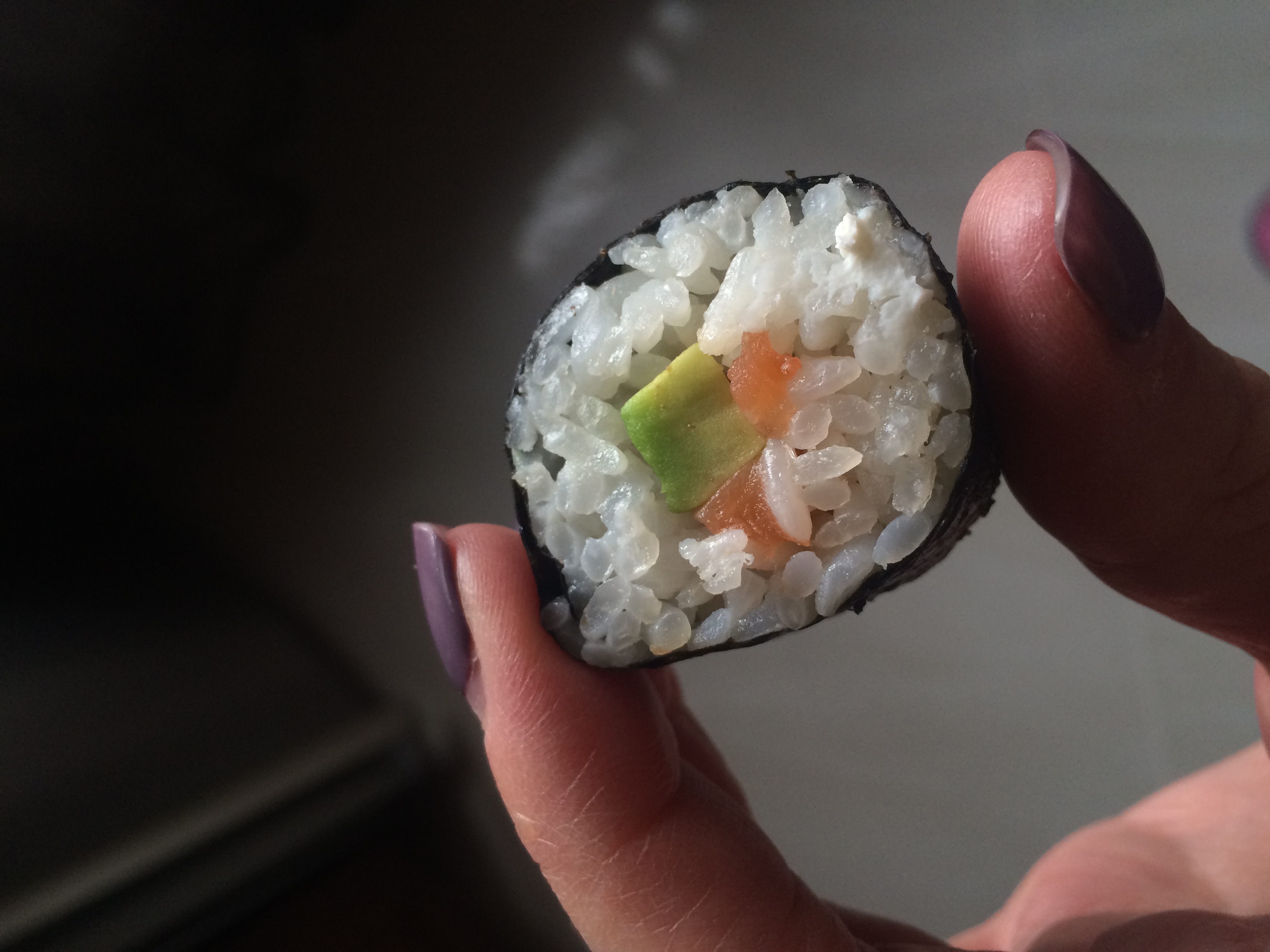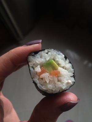 Состав: перец сладкий, огурец, авокадо, салат, кунжут, рис, нори.