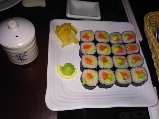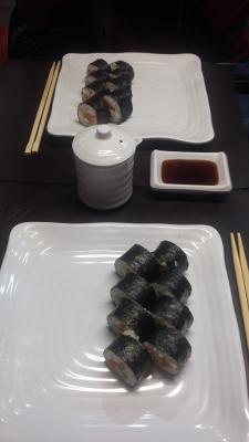 Суши вкусные , заказали и забрали с собой домой так как торопились ( приготовили быстро и рыбки не пожалели) спасибо за акцию