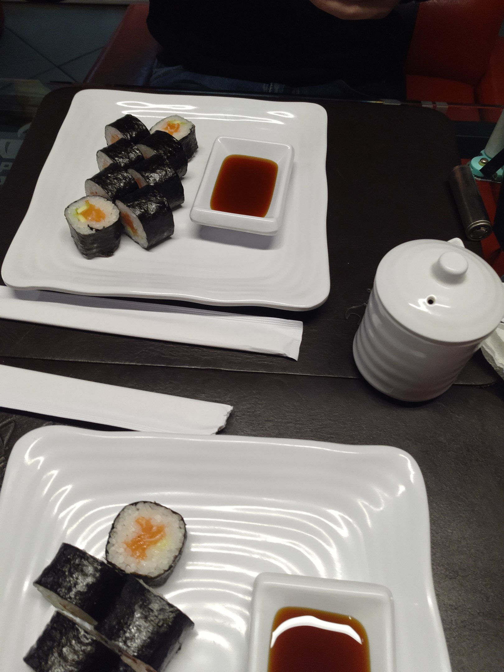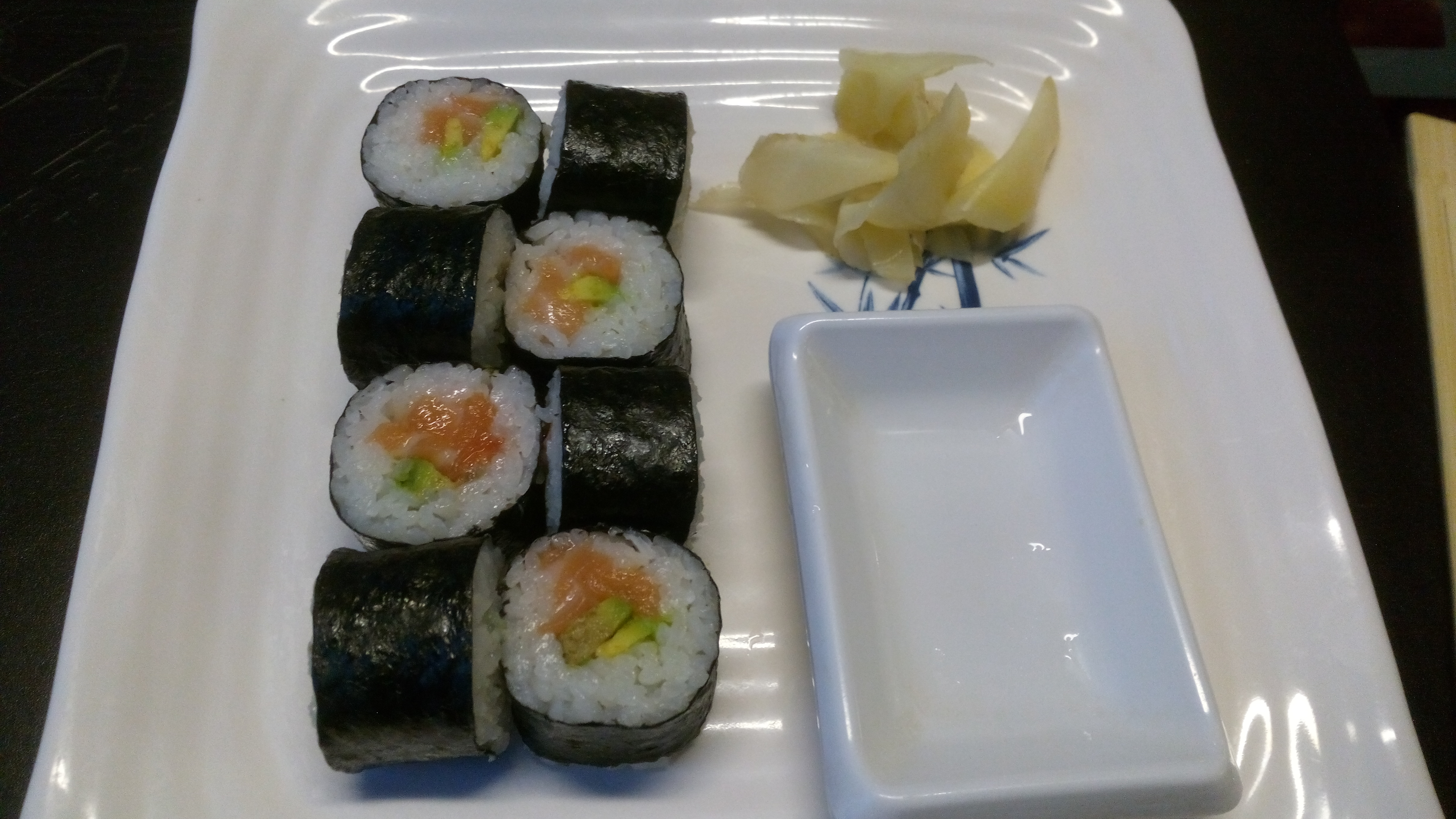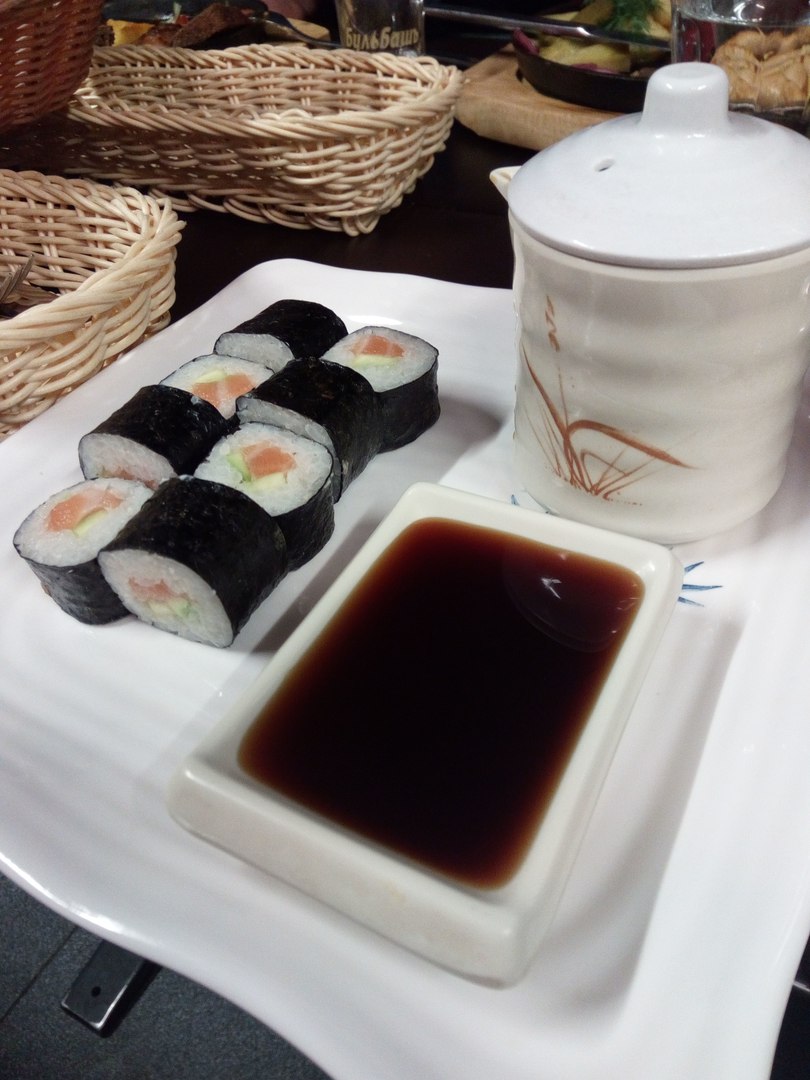 Ела суши в кафе на каменной горке, очень-преочень вкусно, подали с соусом, суши свежие, много начинки)