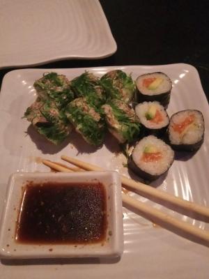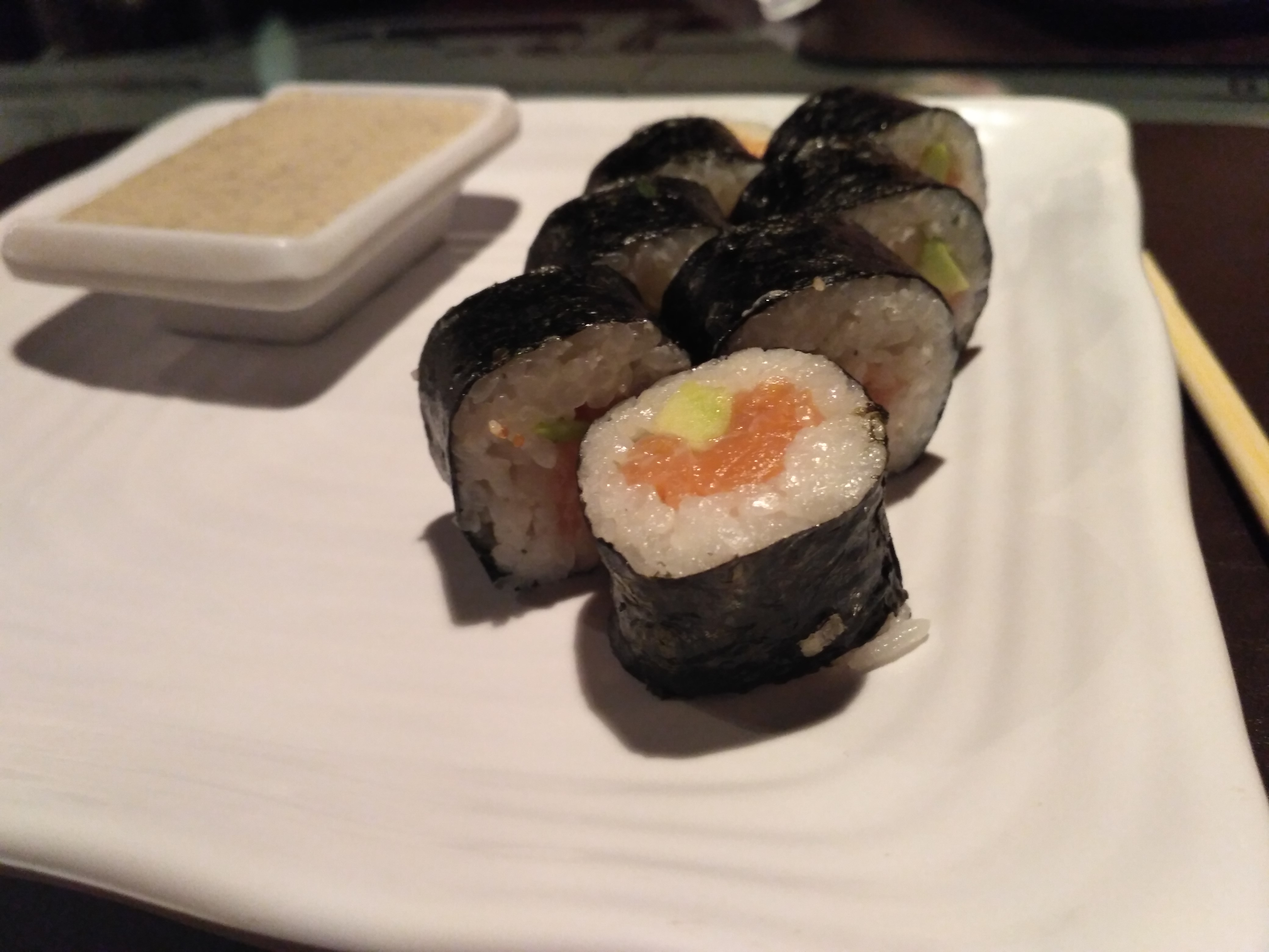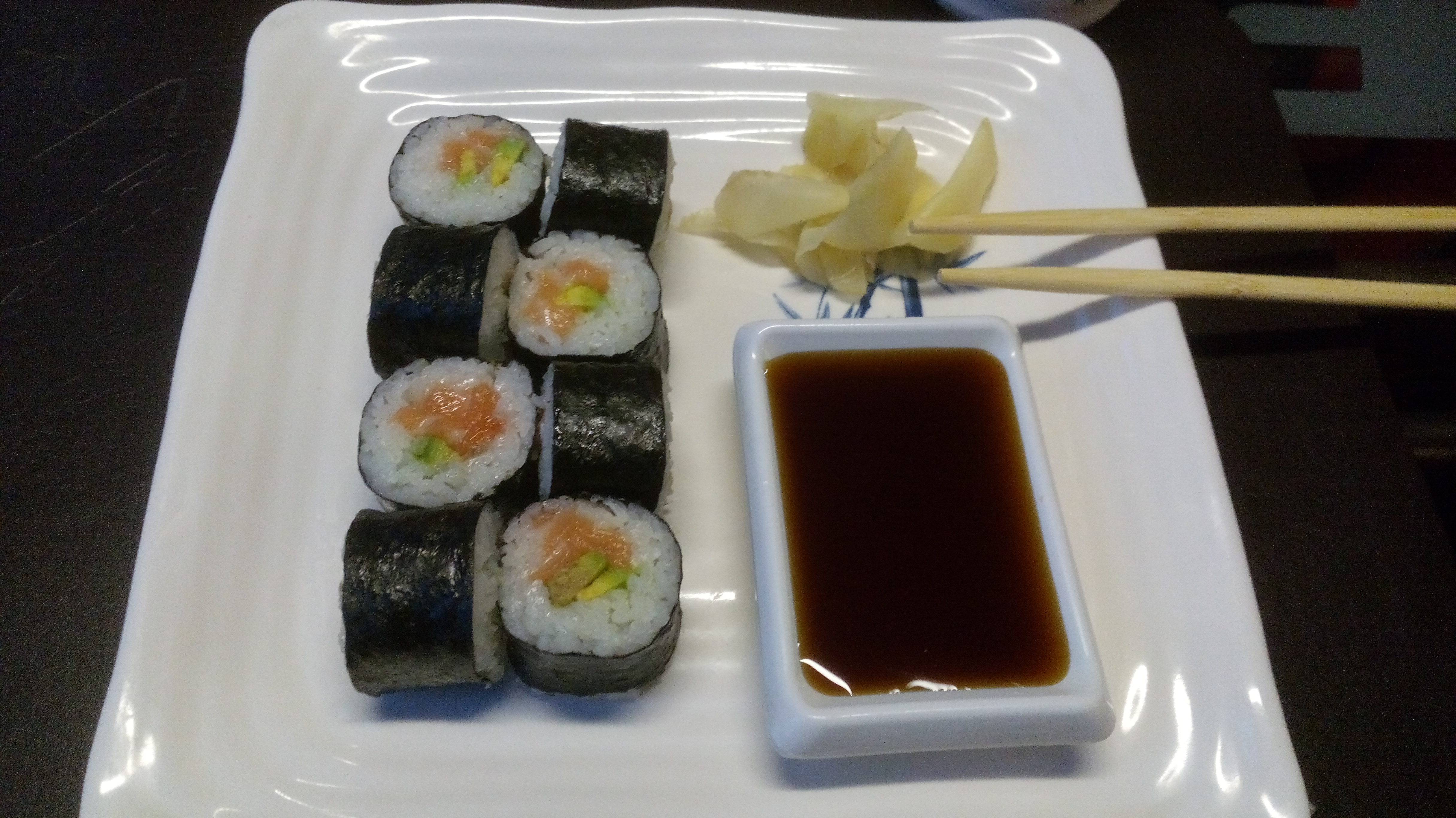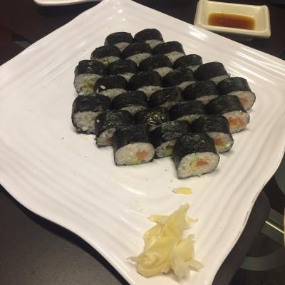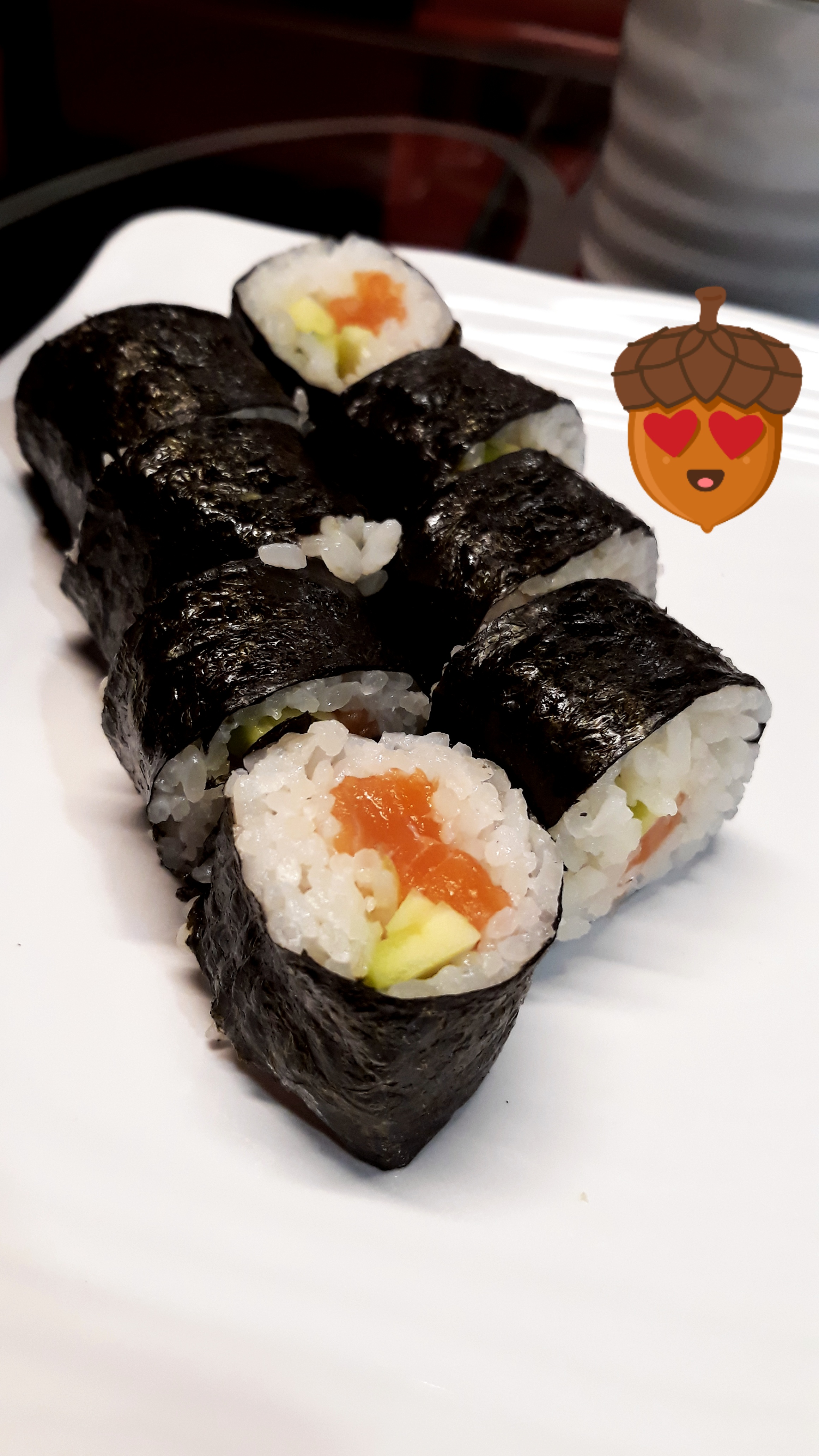 Состав: перец сладкий, огурец, авокадо, салат, кунжут, рис, нори.