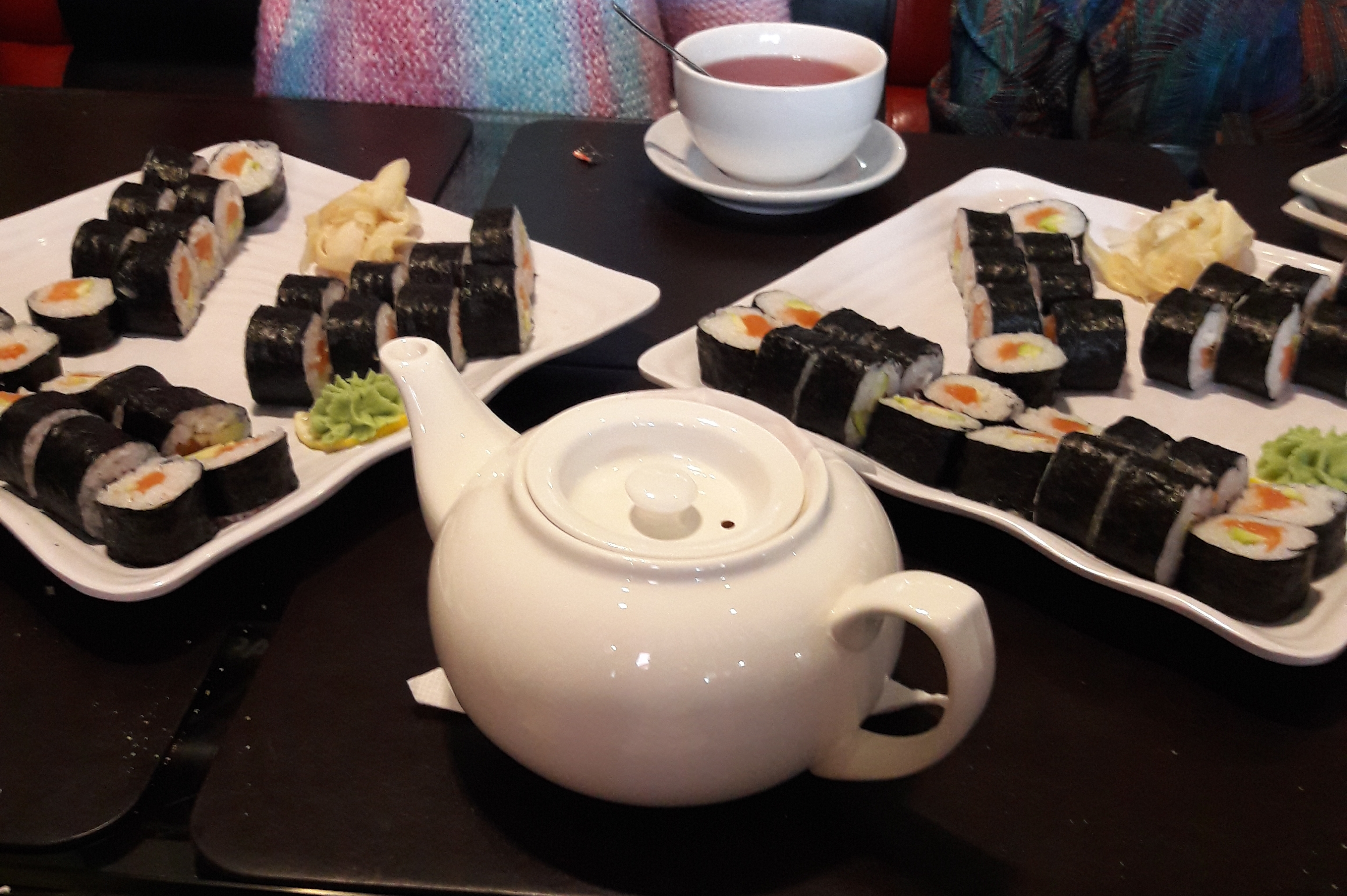 Состав: угорь копченый,сыр сливочный, огурец, рис, нори, соус Терияки.