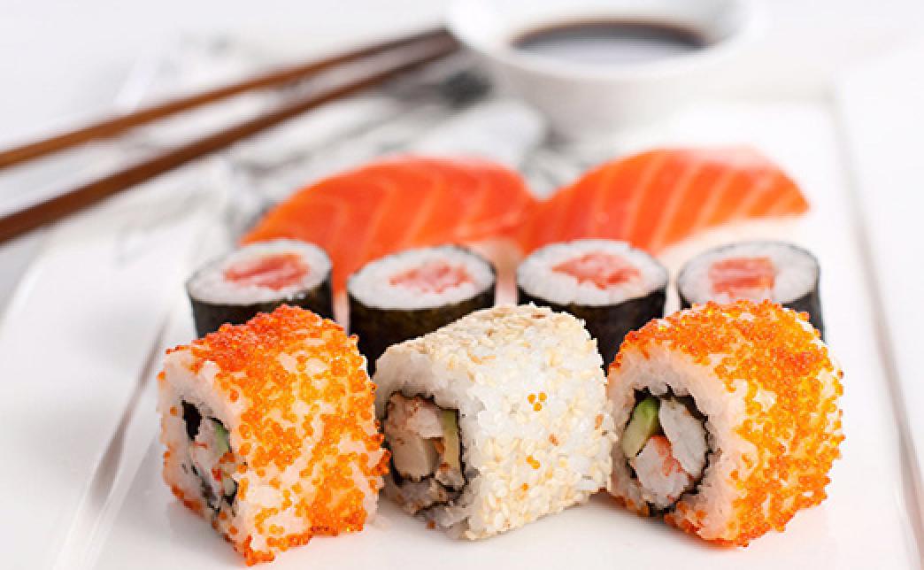 (Нори, рис, креветки, угорь, авокадо, огурцы, филе лосося)