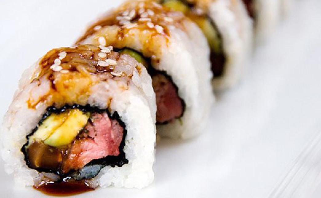(Нори, рис, сыр Филадельфия, огурец, авокадо, копчёный угорь, филе лосося)