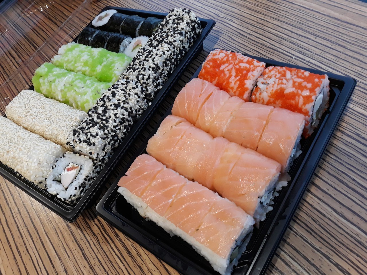 - Идзуми тай (маринованный окунь, лосось, сыр филадельфия, свежий огурец, сладкий соус чили, рис, нори)