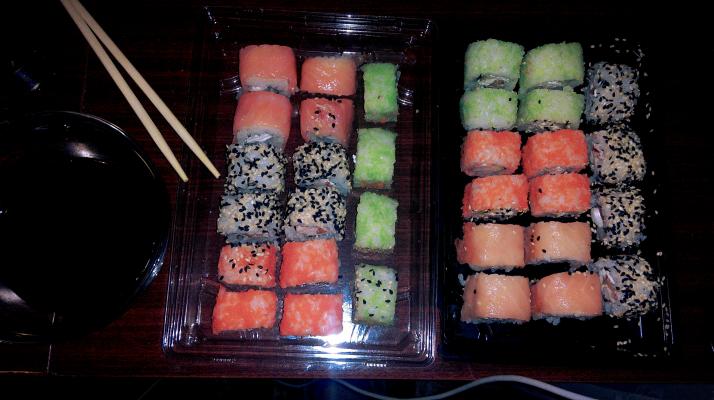 - Соусы, имбирь и васаби оплачиваются отдельно