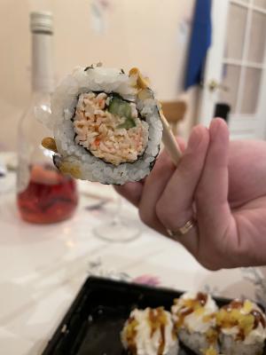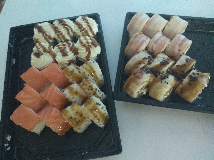 Суши по вкусу средне... Расстроило то, что в описании пишут рыбу, а на самом деле кладут крабовые палочки! Ни в одном из сетов не было в составе крабовых палочек, получается просто экономия...Да ещё и в двух роллах такое...Плюс в быстроте, так как забрали на самовывозе уже через 20 минут.