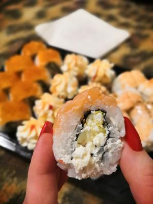 Отличные суши, аромат рыбы был уже через пакет. Вкусно сочно, как захочется суши ещё закажем. Плохие отзывы сбивали с толку, всё ок
