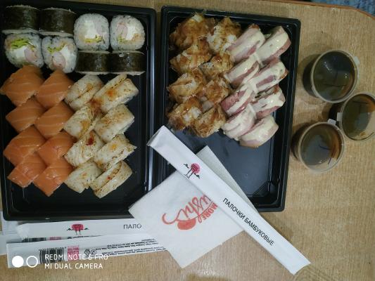 суши вкусные, но долгая доставка, в след. раз будем заказывать только заранее