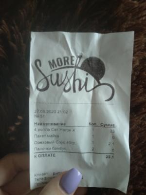 Заказывали сет вчера (21.09.2020)"Сэнсэй", во-первых не соответствие начинки в роллах а во - вторых из 32 штук нормальными были только 1ролл. Очень разочаровали (больше не будем заказывать). И ещё оператор принимающая заказ не доброжелательна к своим клиентам.