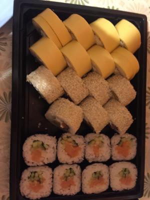 Ужасные суши. Если бы это были первые суши, которые я в принципе пробовала, то сказала бы «ВАУ». Но поскольку пробовала во многих местах, эти суши не самые лучше, не рекомендую.Во-первых, сервис - не дозвониться.Постояннно набираешь один и тот же номер «Абонент временно недоступен», это стоило большого труда, что бы сделать заказ. Оператор был то ли новичок, то ли слишком медлителен, заказ я оформляла минут 15. Во-вторых, они были очень солёные соленые, предположу, что рыба должна была вот-вот подойти к окончанию срока годности, да и вообще, какая рыба, ее там как кот наплакал, одно название осталось «суши»(заказ был сделан 14.02.2020)я до сих пор искренне не понимаю, откуда такой высокий рейтинг. Заказывать больше точно не буду.