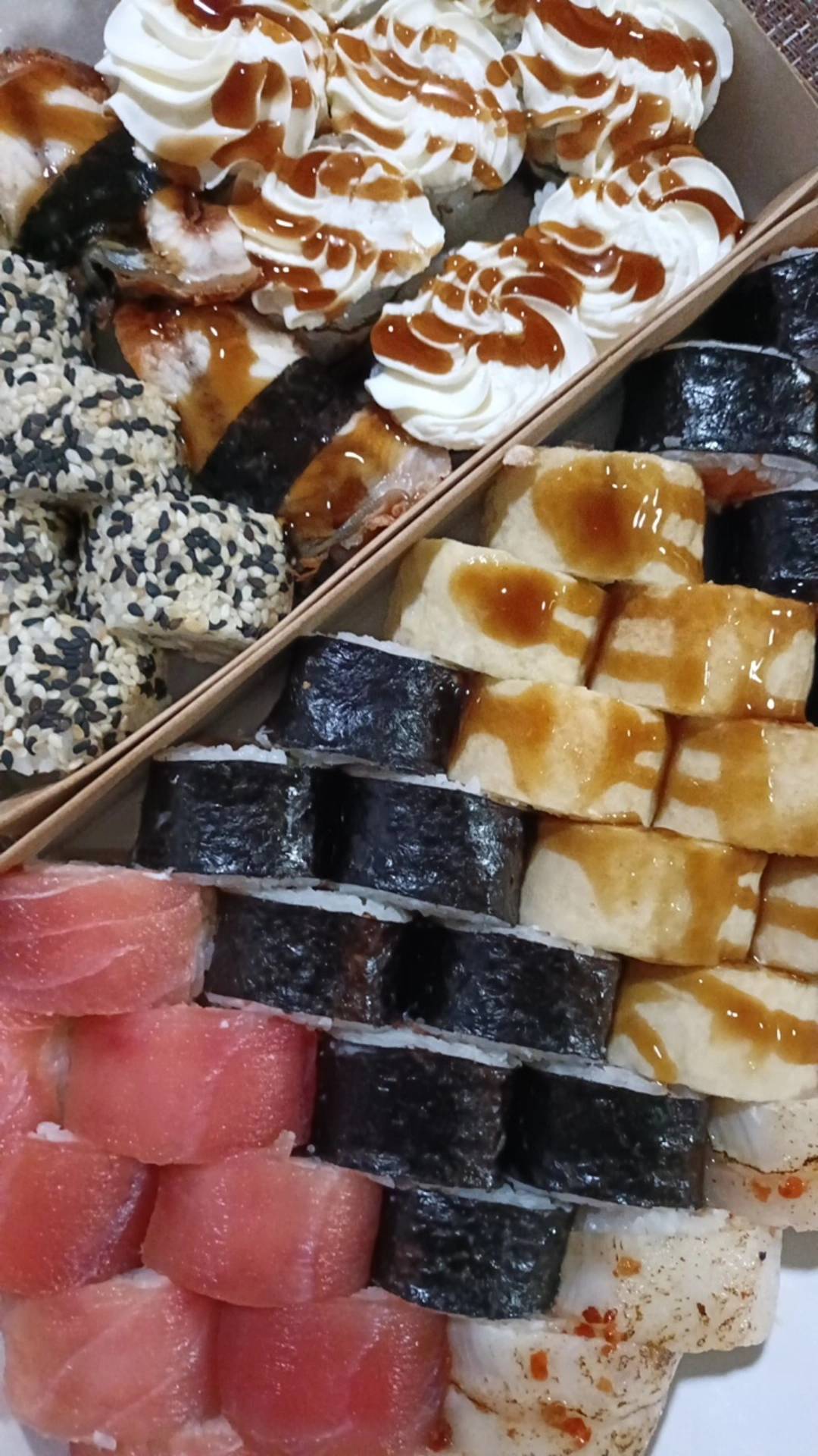 Разочарование на Новый год. Заказала сет. Отвратительно невкусно. Такое чувство, что на НГ работал конвеер лишь бы заработать и готовить начали за несколько дней. Рис без вкуса абсолютно! Вы имеете понятие, что такое рисовый уксус? От количества начинки я была просто в шоке! Кому нужны ваши акции, если платишь в итоге только за невкусный пресный рис??? Половина роллов была уже несвежая и сухая. Две звезды только за сервис и доставку. Здесь вопросов нет.