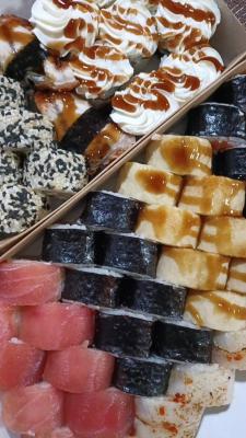 Суши не вкусные ….. один рис сухой ,рыбы мало , прям тоненько тоненько нарезана ,,,, не советую ….