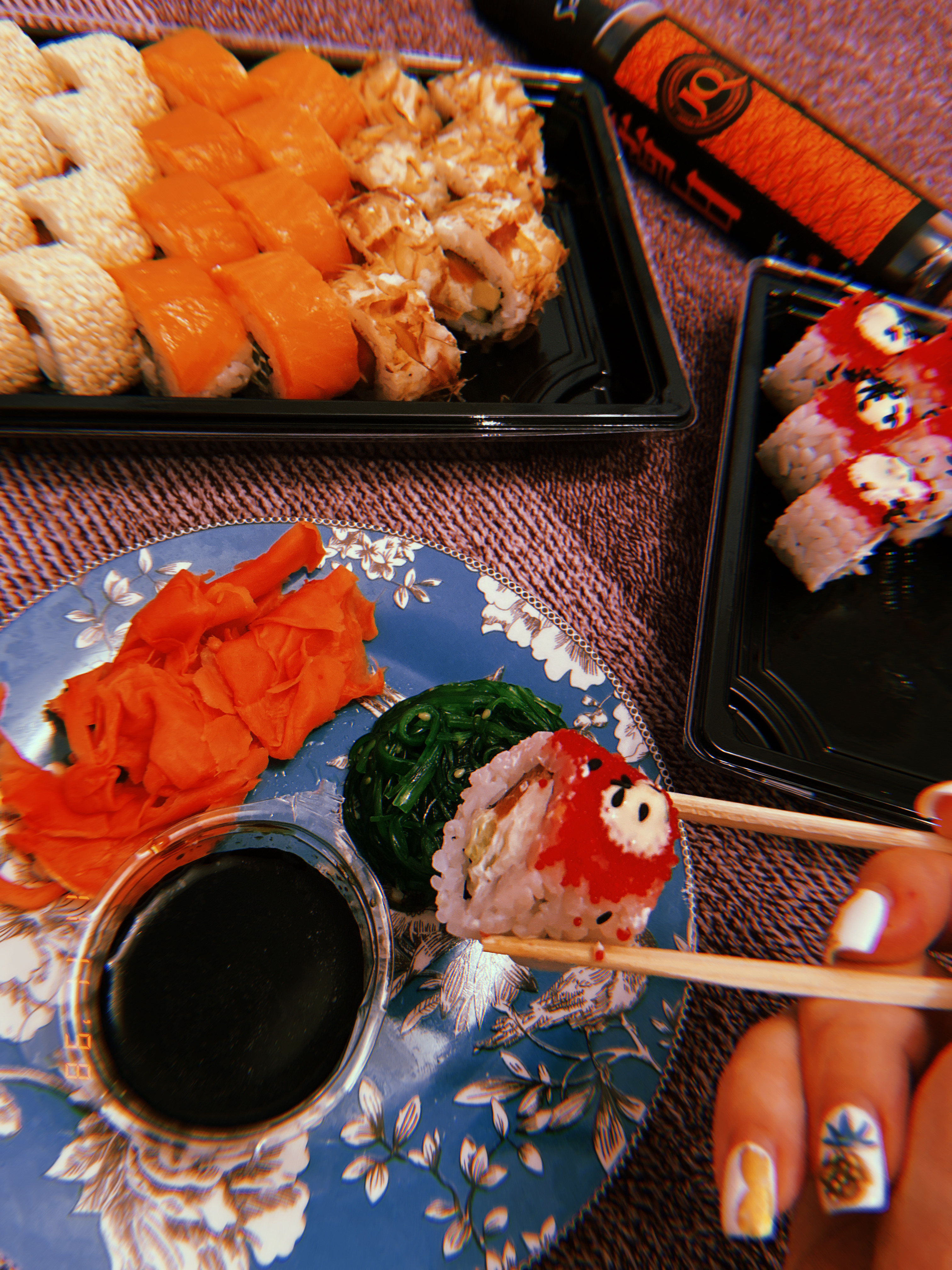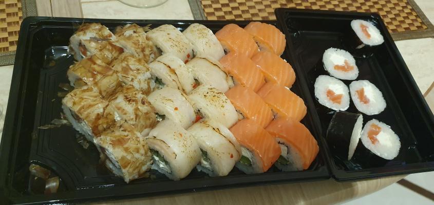 Вельмі свежыя і смачныя сушы, усім раю. Дастаўка цягам гадзіны.