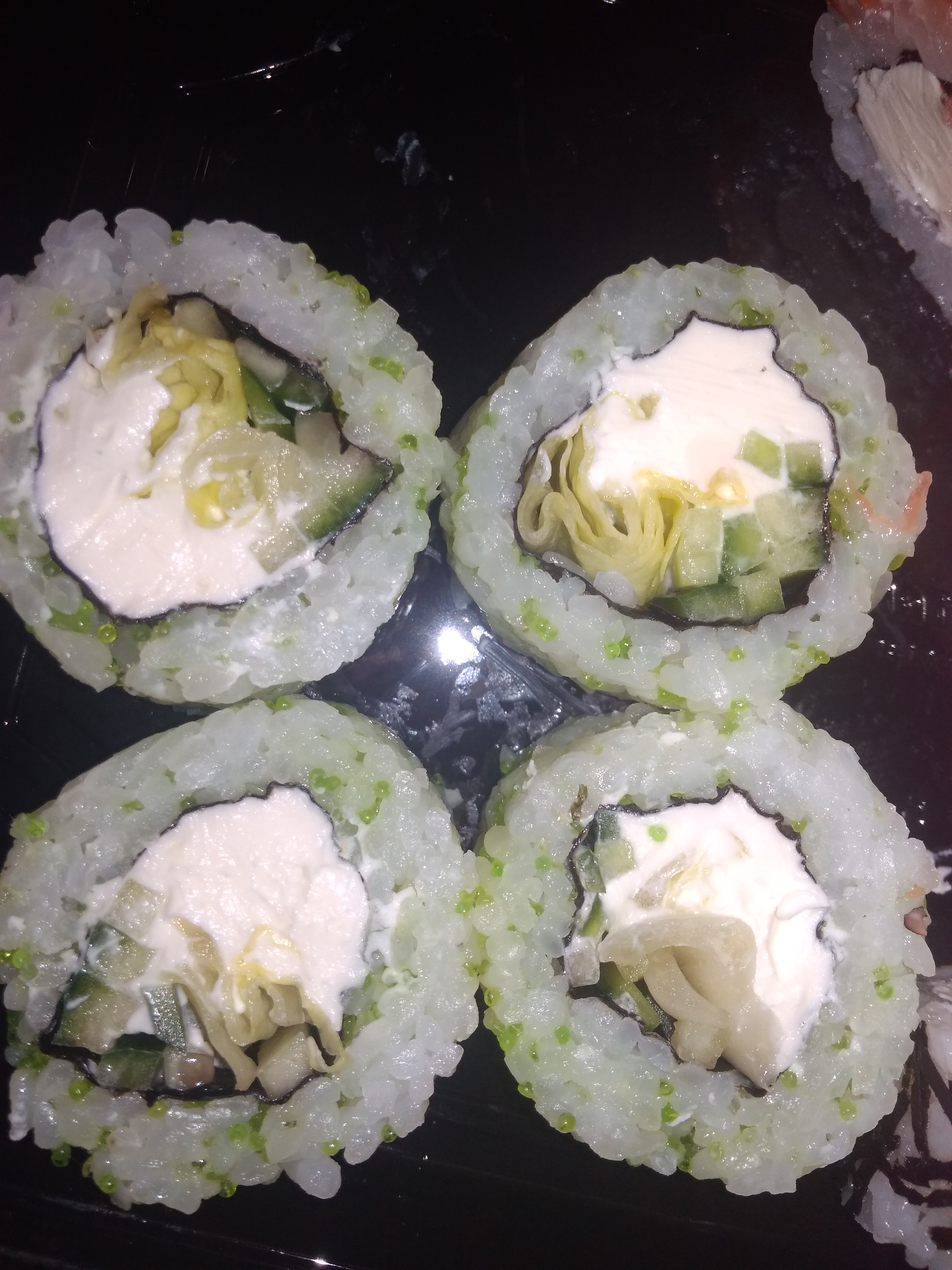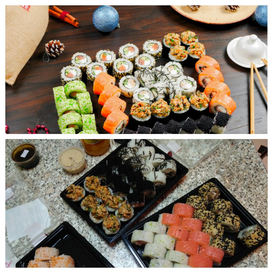 Но у нас из зеленых суш кто-то съел лосося. Снижаем бал за прожорливого повара☺️