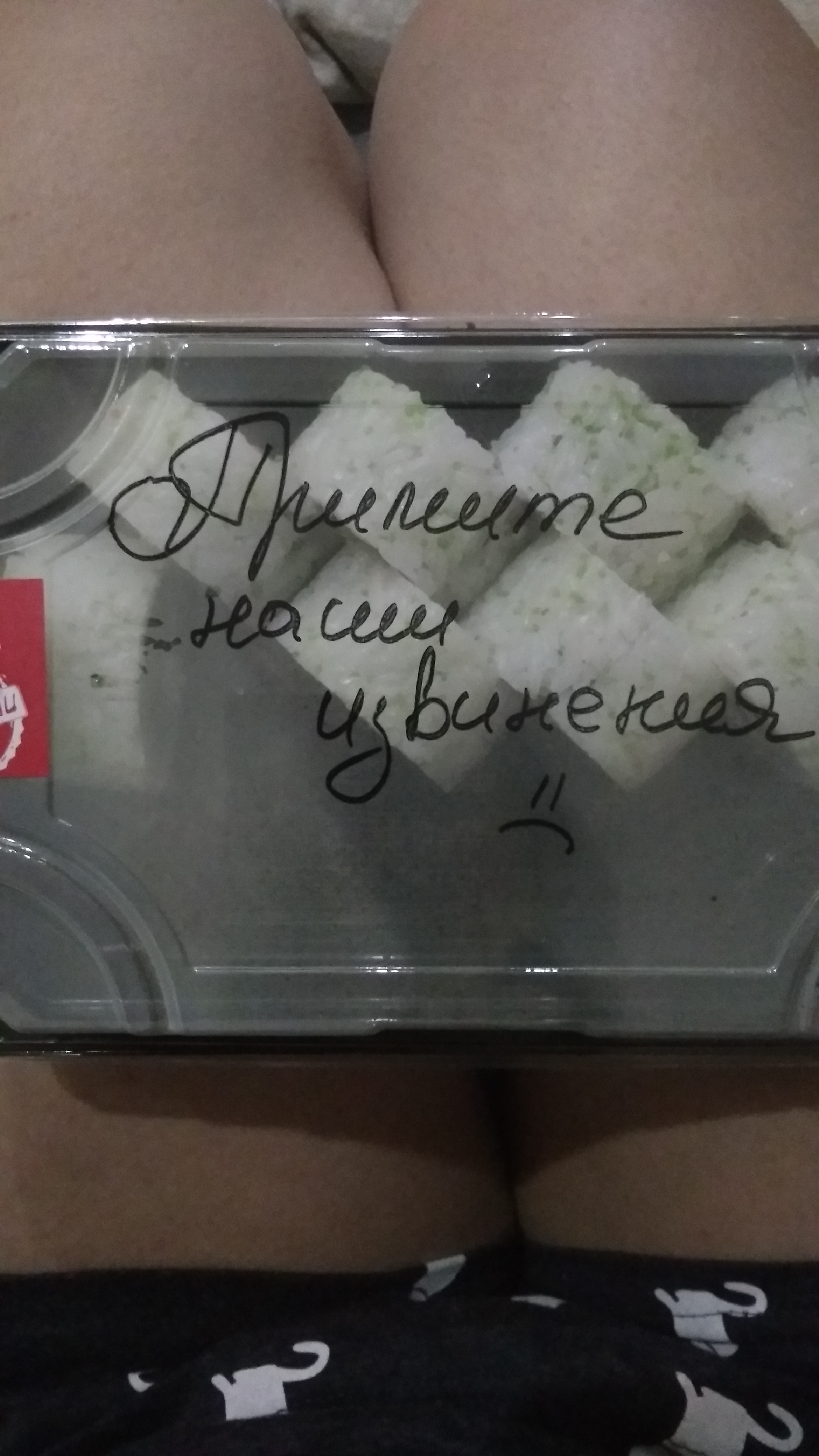 Заказывал самовывоз сегодня. Приехал около 19. Пакет стоит. Девочка на кассе помогает определиться с выбором даме. Стою, наблюдаю, что будет дальше.  Девочка пару раз посмотрела на меня, но ничего сказать так и не решилась. Потом пришла какая то сотрудница, тоже посмотрела прям в глаза )) И ушла. Потом та , что на кассе в конце концов объяснила про бонусы за каждые 10 рублей, пробила чек.....ну, ну думаю, может спросит теперь что нибудь, - нет )))) не смогла, что то там еще начала копошиться. Ребят, может у вас комплексы какие? Да общайтесь вы с клиентами, посмотрите как это делают те, которые заинтересованы в продажах (в соседних странах западнее, кое где у нас на рынке), если стоит очередь из 3-4 человек, продавец умудряется перекинуться с каждым стоящим словечком и в курсе, что там дальше его ждет, клиент тоже понимает, что процесс идет....Вас там две было, из тех, кто не лепит суши и вам абыяково или не решительные вы , а скорее - это вам просто не надо, ведь больше не заплатят ........