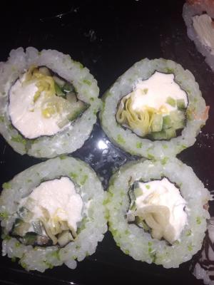 - сливочный сыр, филе лосося, огурец, рис, нори (8 шт)