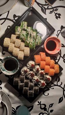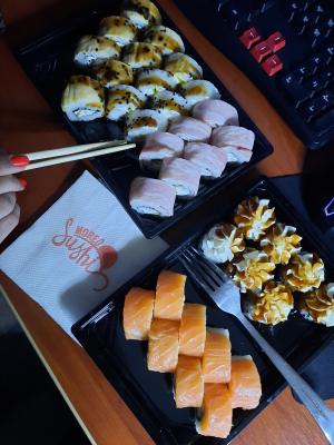 Заказываем суши только здесь уже на протяжении года! Много читаю отзывов, что телефоны не отвечают. Я как-то тоже не могла дозвониться, а потом решила написать в вайбер. И о чудо - ответ пришел в течение 5 минут! Все быстро уточнили и приняли заказ. После этого всегда пишу только в вайбер и никаких проблем нет. Суши вкусные, причем всегда! Ни разу не было, чтобы что-то пришло сухое или переваренное. Доставка обычно в течение 2,5 -3 часов, поэтому всегда делаю заказ заранее. Привозят в указанный интервал времени. По цене/качеству это лучший вариант на мой взгляд.