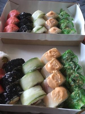 Сделала заказ и забирала самовывозом. Суши хорошие к этому нет вопросов. Зато обслуживание но нулевом уровне. Не умеет персонал работать с клиентами!!!