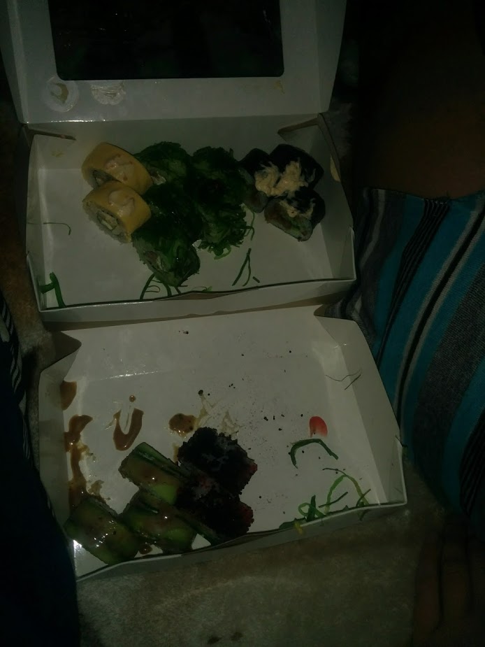 Качество суши хуже, чем в супермаркетах. Свежие, спора нет, но в качестве начинки, чтобы вы понимали, обжаренная рыба, похожая на кильку, ролл с курицей сухой. Спасибо, больше ни за что.