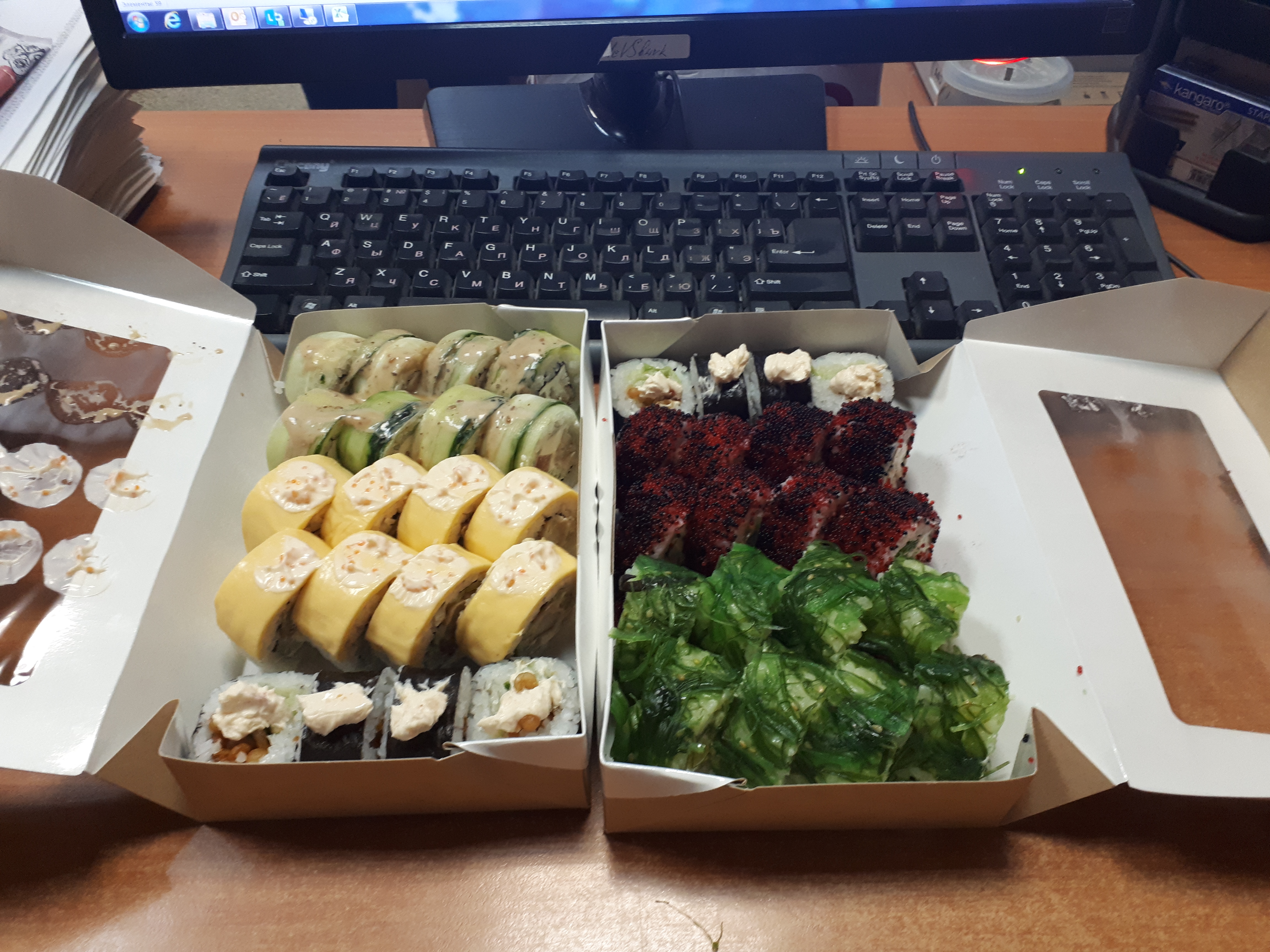 Заказывал Экстра + на большую компанию, суши свежие, интересные, однако больше такие брать не буду, поскольку не сильно вдохновили, возможно не то сочетание вкусов для меня, да и сыра люблю когда побольше