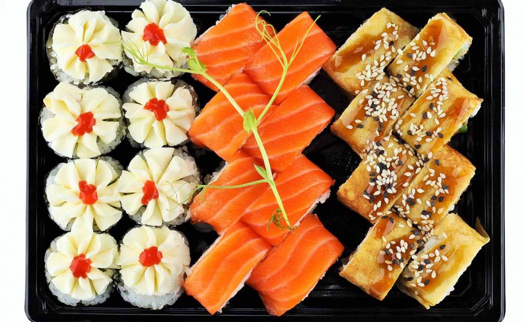 - ролл (8 шт): томаго, такуан, крабовая палочка, сыр сливочный, соус терияки, соус спайси, нори, рис