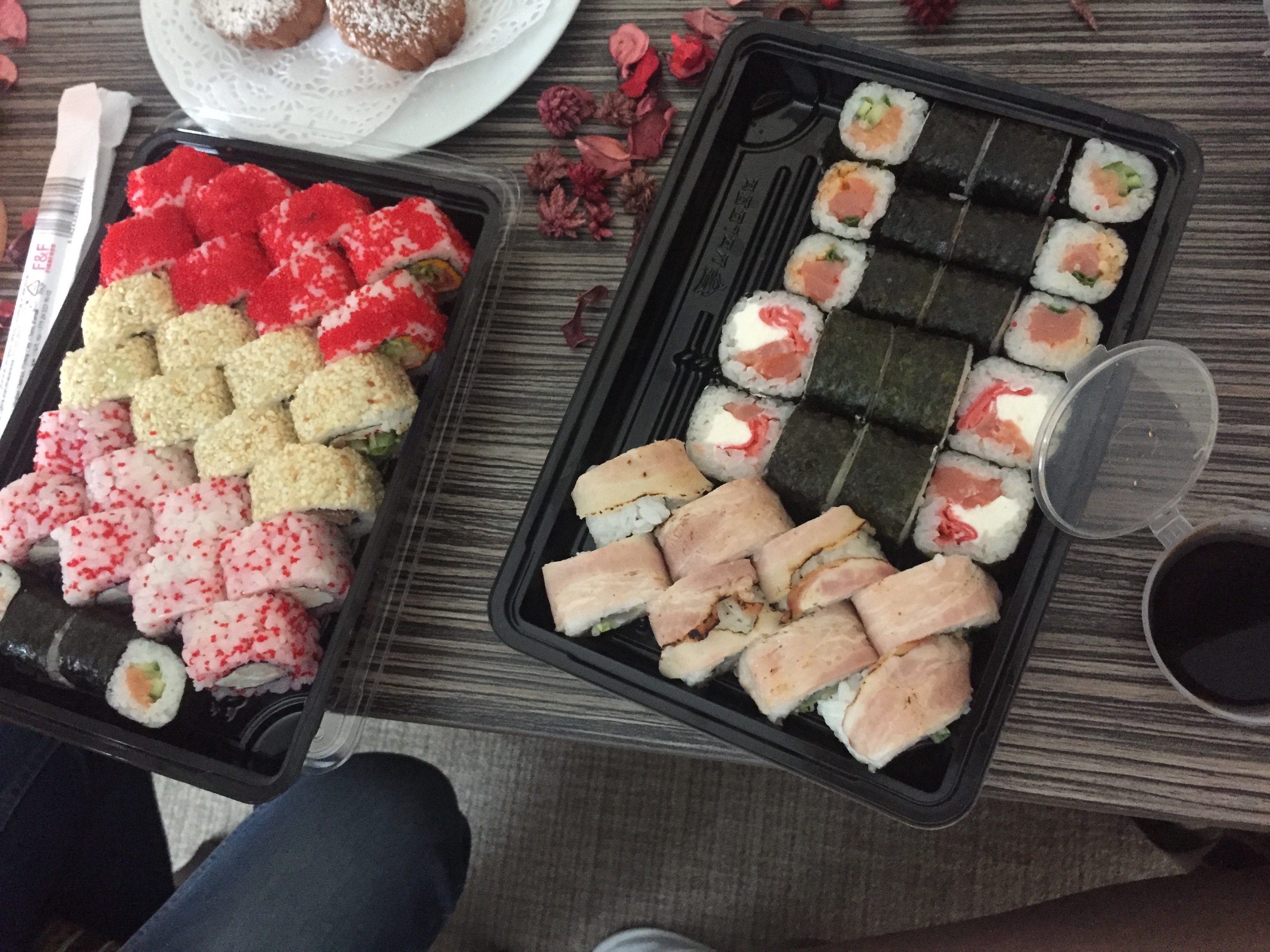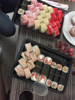 Вчера заказывала сет к дню рождения супруга. После заказа через 30 минут заказ был готов. Качество суши хорошее, вкусные, свежие, в подарок за самовывоз ролл в подарок, все гарниры, 2 порции палочек.