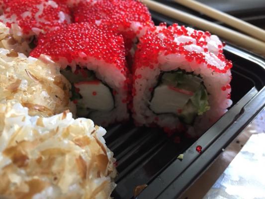 Заказывала сегодня несколько видов роллов.Курьер приехал вовремя.Начинки в роллах много,НО!!!В Калифорнии вместо заявленной тигровой креветки оказалась обычная крабовая палочка!В роллах очень жесткий авокадо.Очень обидно,что попала на такой обман!