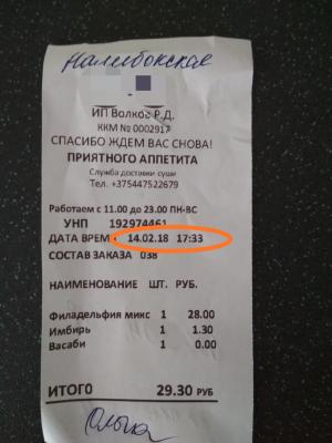 Заказывал суши "Парадайс". Вместо 511 гр. заявленных на сайте вручили 380 гр. Взвесили на электронных весах после того, как заподозрили в небольшом колличестве. Причем это вместе с упаковкой. Рис в суши сырой, не проварен. Сами суши были явно не свежие. Как будто неделю пролежали в холодильнике. Общее впечатление ,увы, негативное.