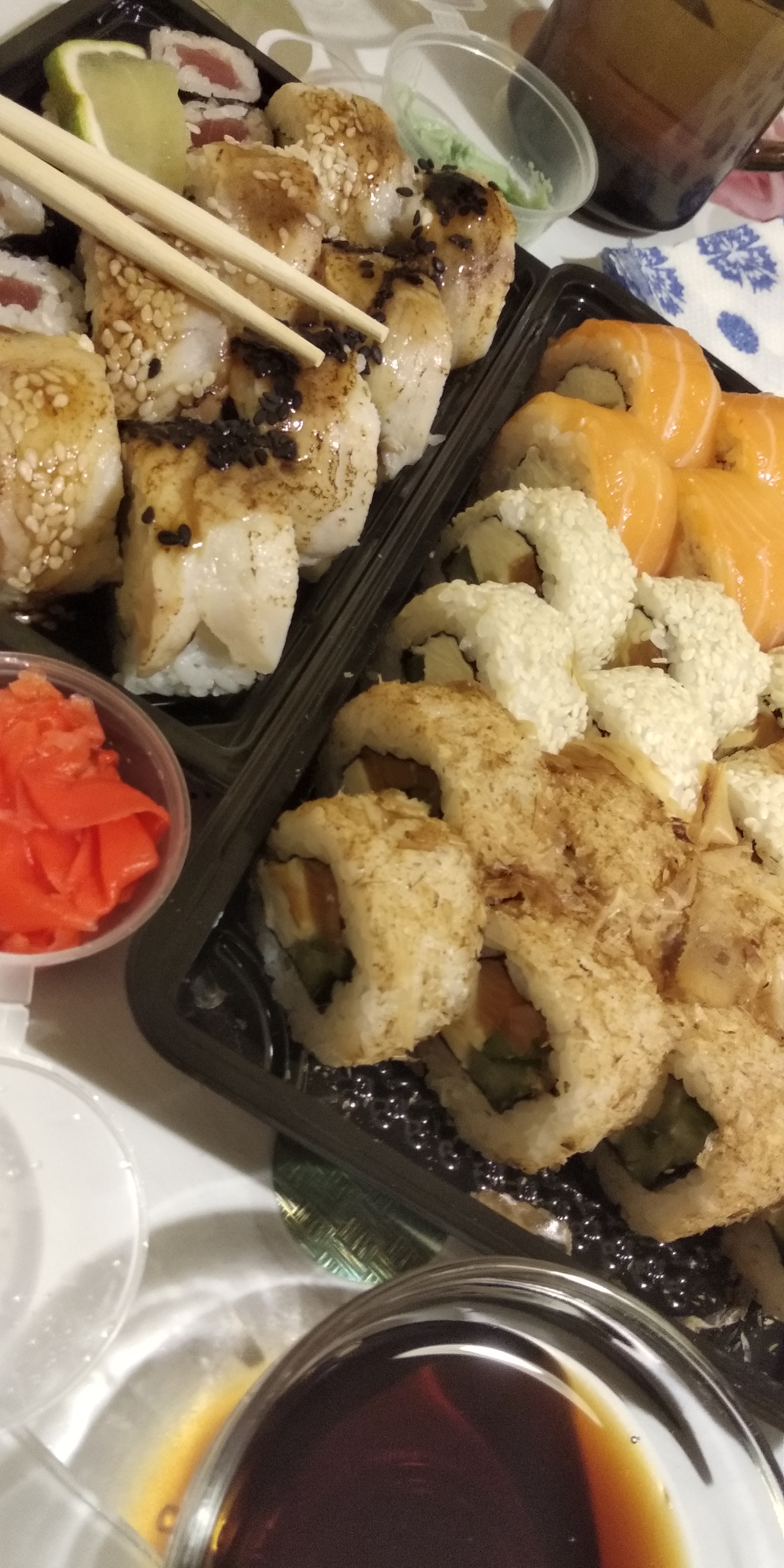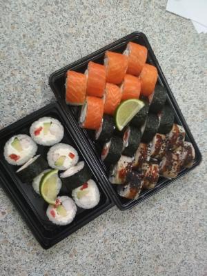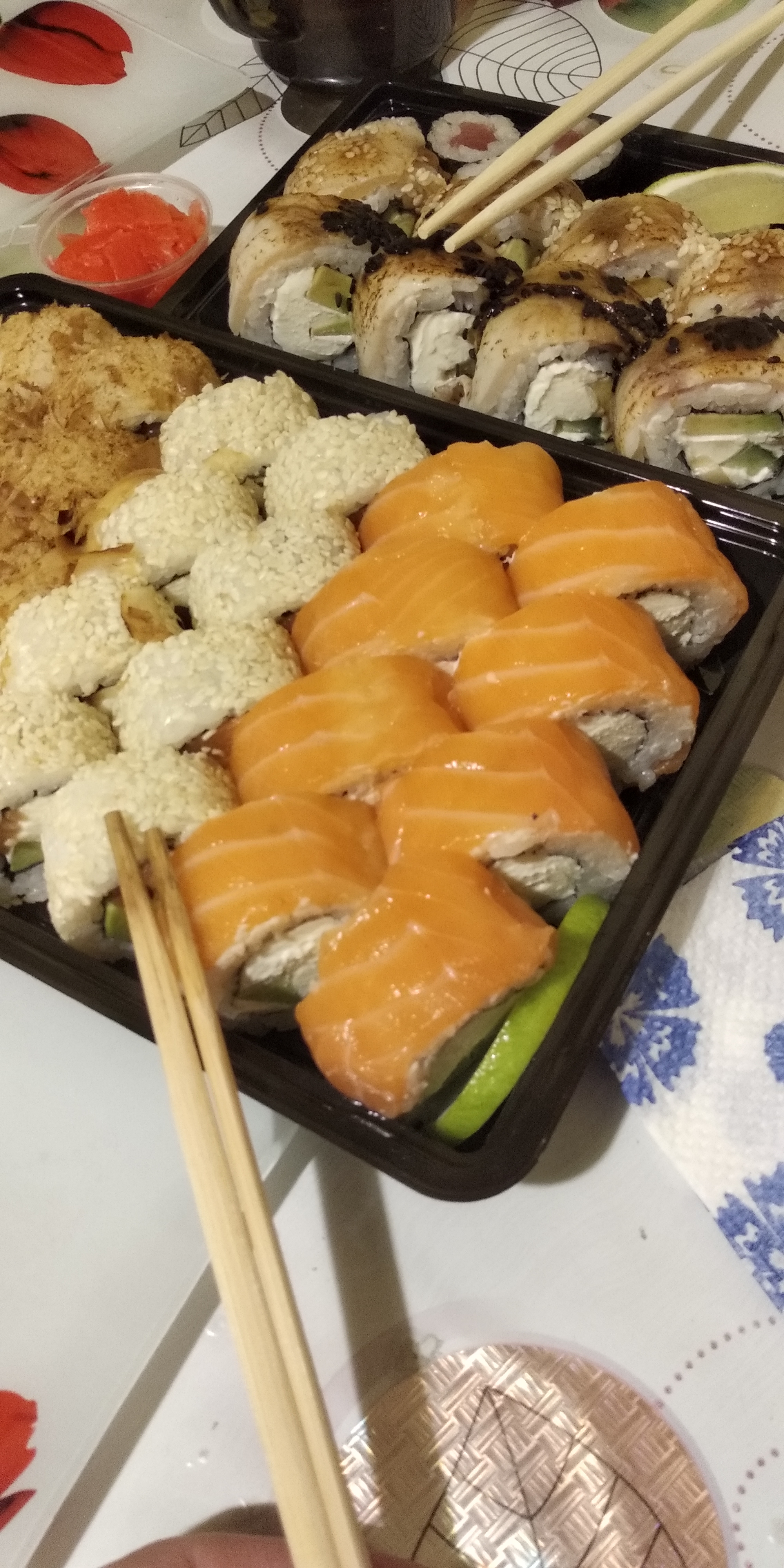 Безумно вкусные суши, доставка вовремя, даже получилось немножко раньше! Суши нуууу оччеенннььь вкусные!!!!! Свежие, большие, аккуратно сделаны, придраться реально не к чему, да и не нужно !!!!! Один сет привела в пример, что в отличии от конкурентов вышло на 130 гр больше указанного на сайте веса сета! Второй приблизительно также, не успела сфоткать, кушала суши))) Приятно невероятно Это атас! Курьер доброжелательный!!! Вся компания заценила на все 100%! Спасибо за хорошее качество, работу и прекрасное настроение!!!!!