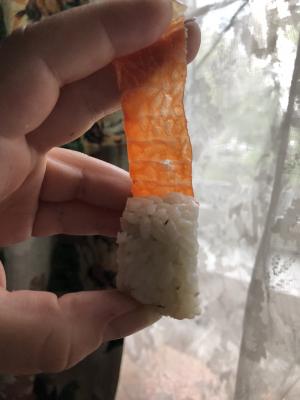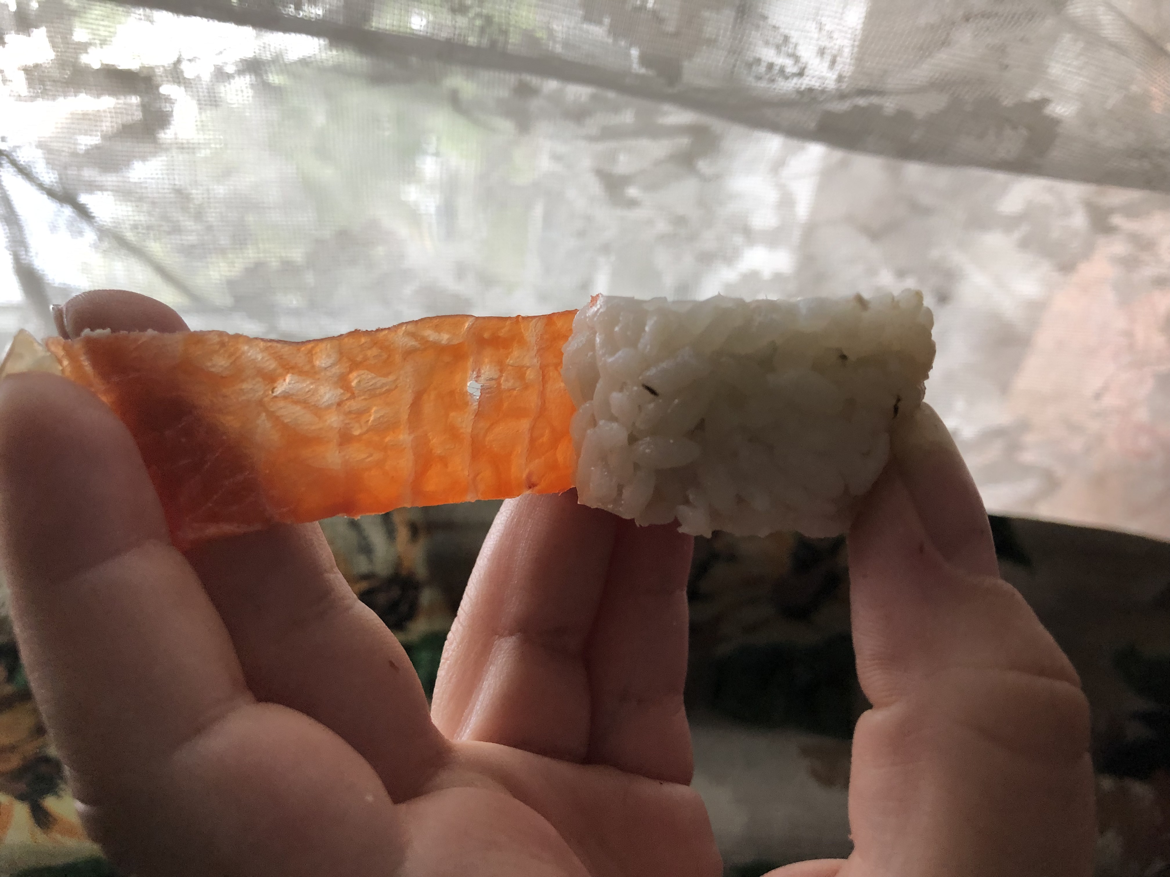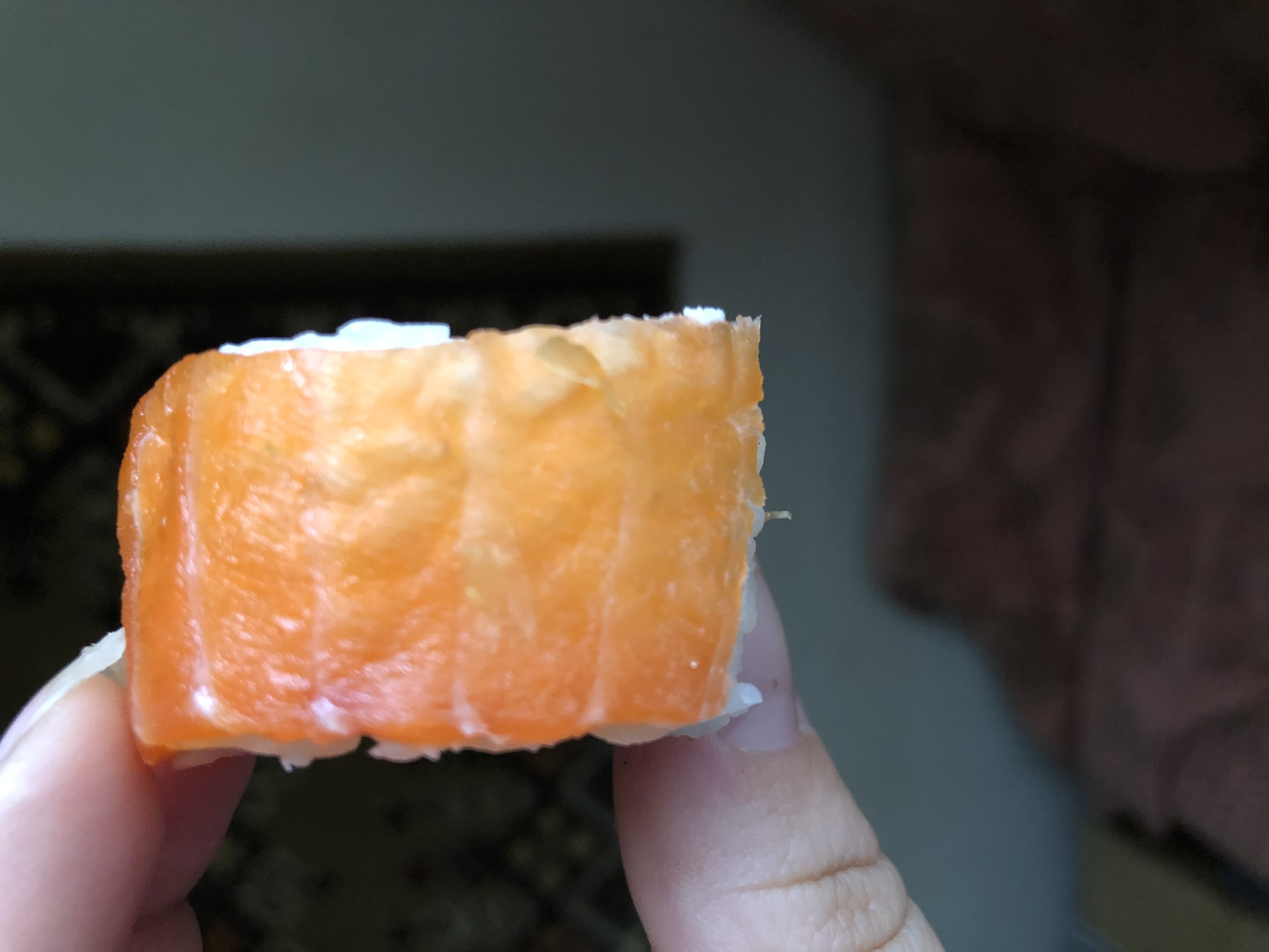 Суши неплохие. Крупные за счёт сыра. Сыр во всем сете одинаковый, по вкусу - ешь как будто рис с сыром. Рыбы в составе по факту очень мало.