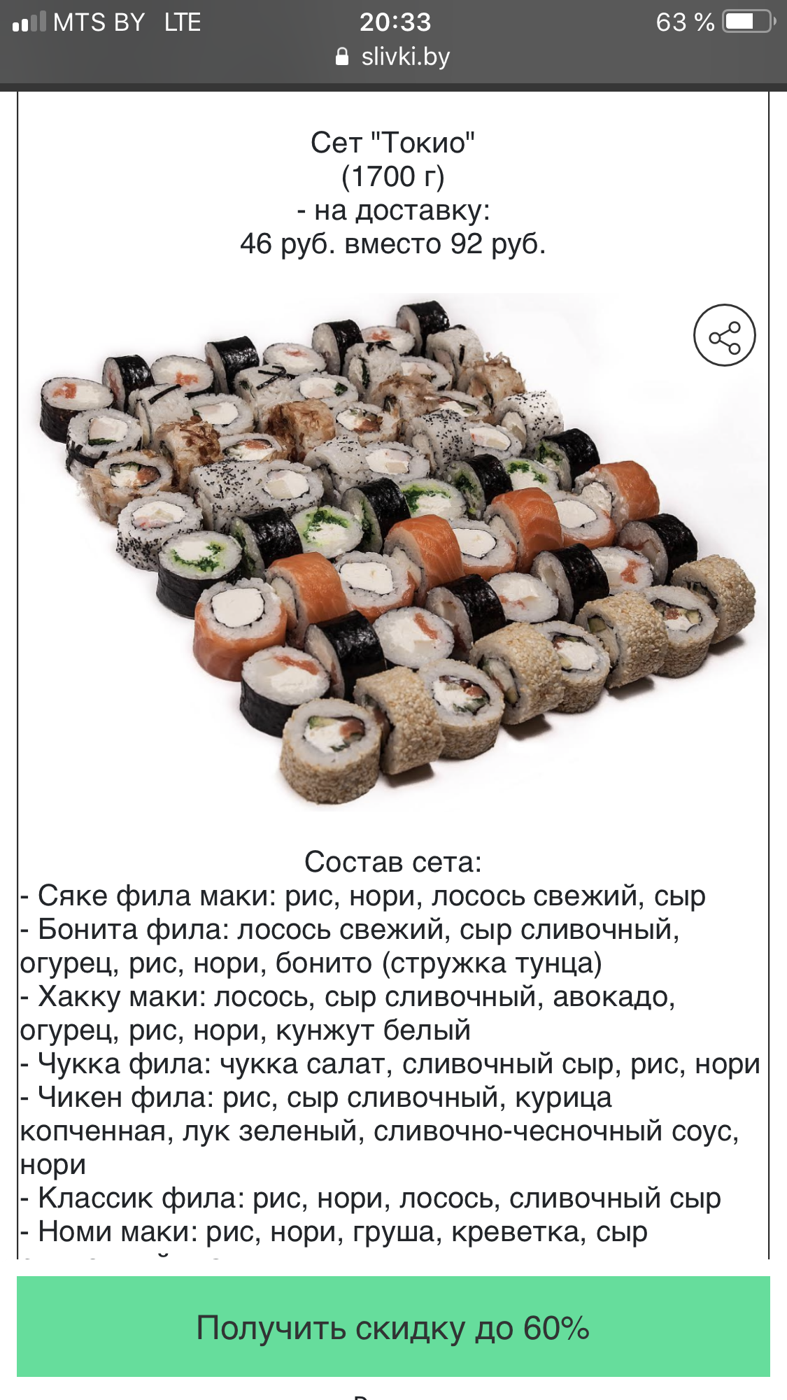 Ищите дешевле, дороговато с учетом платной доставки и отсутствия имбиря, соевого и вассаби по умолчанию.