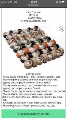 Заказывала сет Хит, в пятницу вечером привезли все вовремя, вопросов никаких, но! суши сплошной рис и сыр, слой рыбы прозрачный, роллы разваливаются, есть можно, но своих денег не стоит. И кстати на их сайте этот же сет стоит на 50 копеек дороже, однако вам не нужно платить за промокод