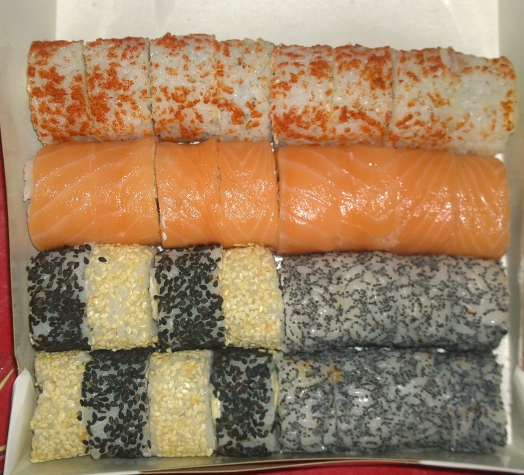 - рис, сыр, мидии, терияки, тобика красная  и кунжут черн.