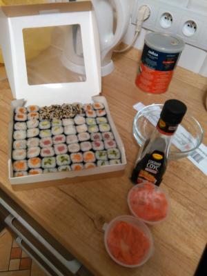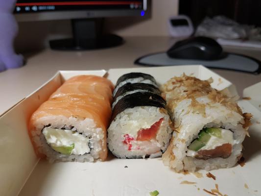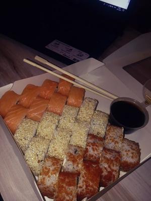 Оперативная доставка - курьеру зачёт! А вот сами суши не понравились - очень жёсткие получились водоросли, которые потом приходится дожовывать как жвачку. Пиро маки - не советую, жареный лосось на вкус как обычная консерва.