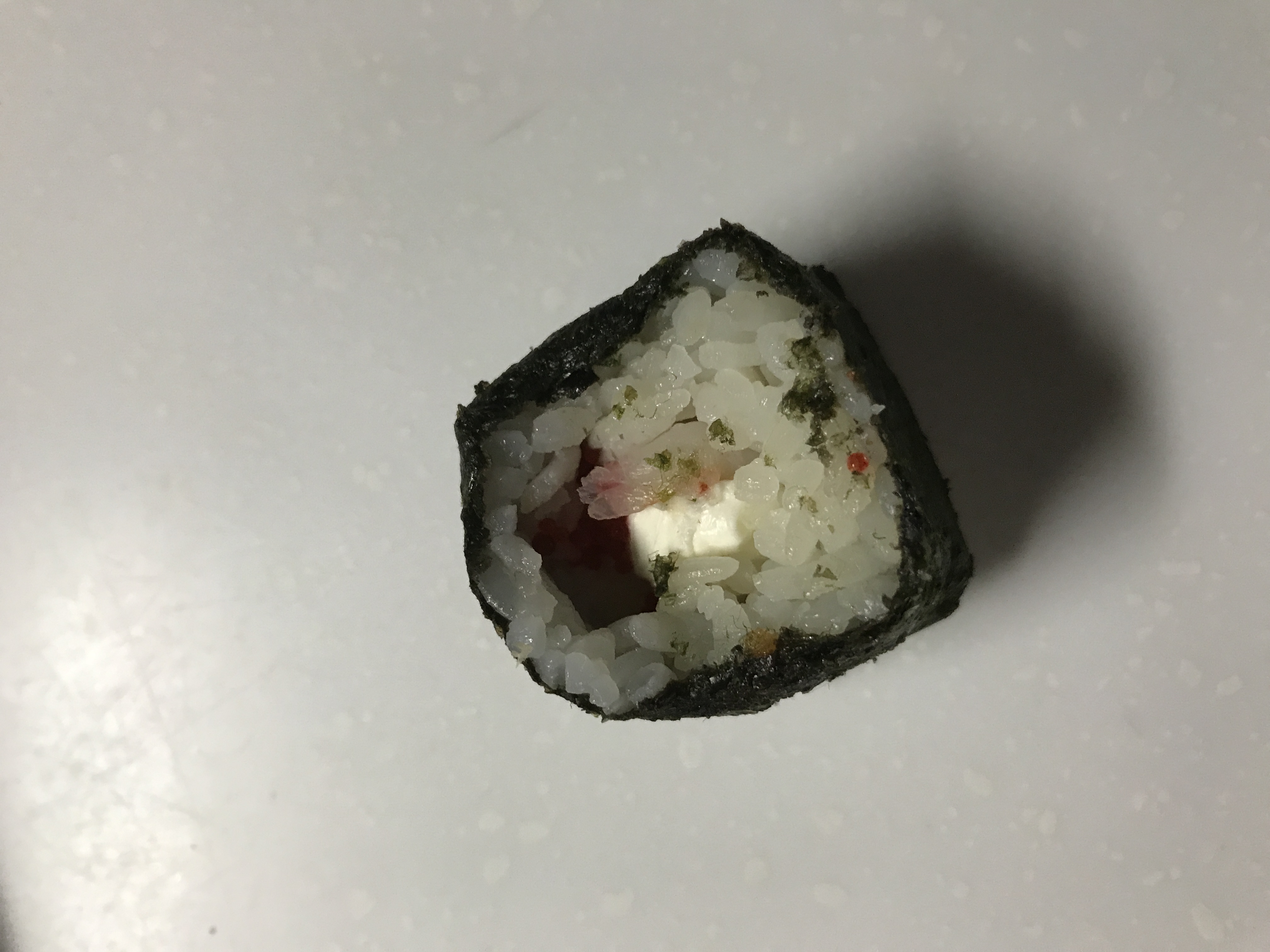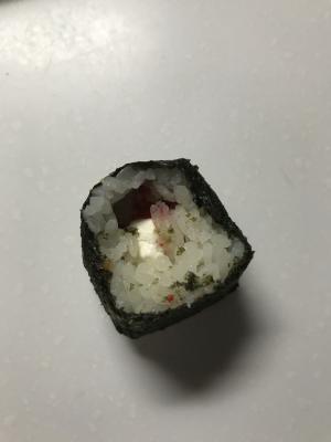 - рис, сыр,  огурец, перец, тобико, окунь опаленный