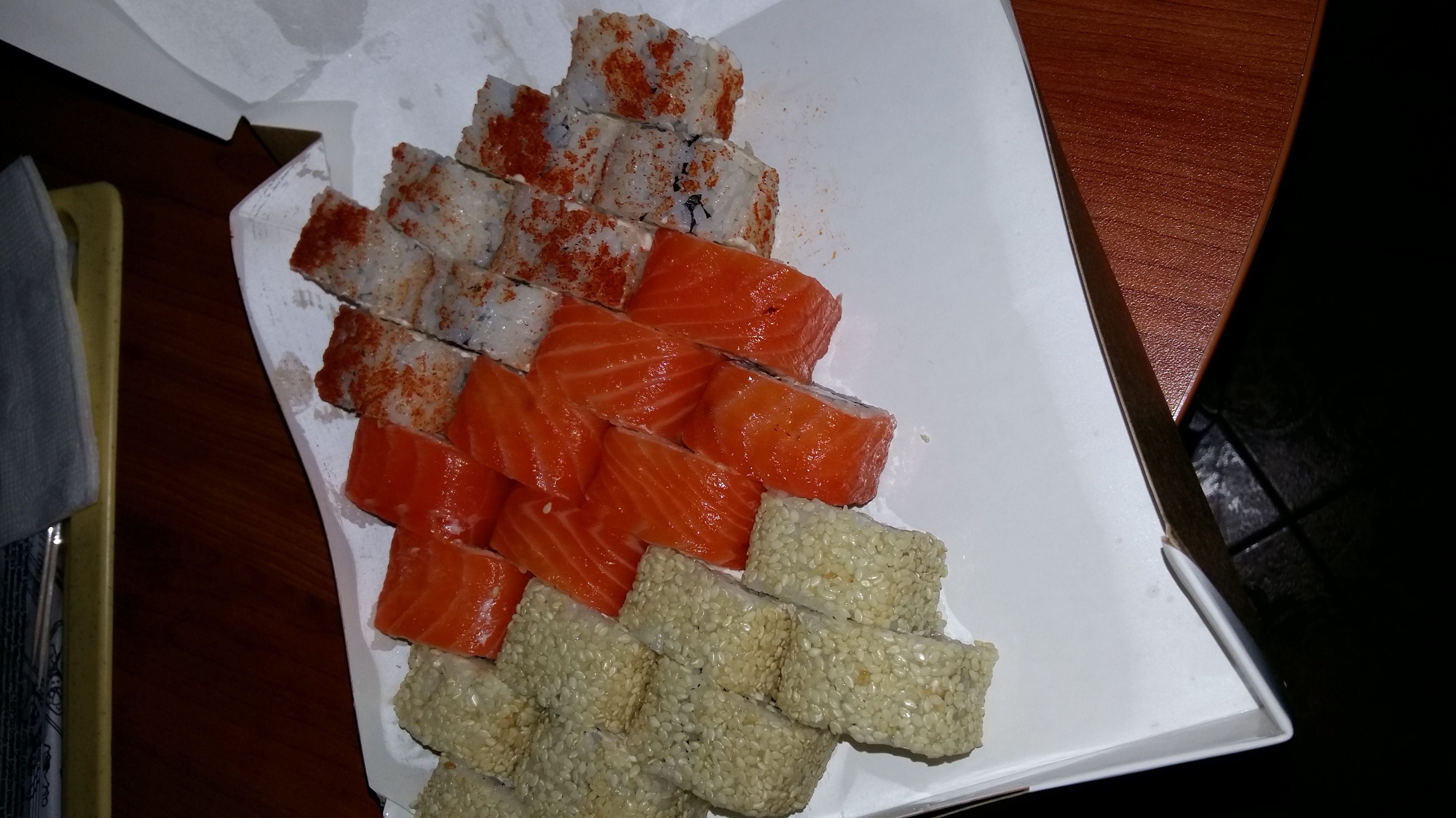 Заказывали суши в пятницу. Очень понравились суши и особенно вкусный рис)) Но суши были немного однообразны как-то и многовато было в них сливочного сыра. он перебивал остальные ингридиенты. А так все понравилось , спасибо.