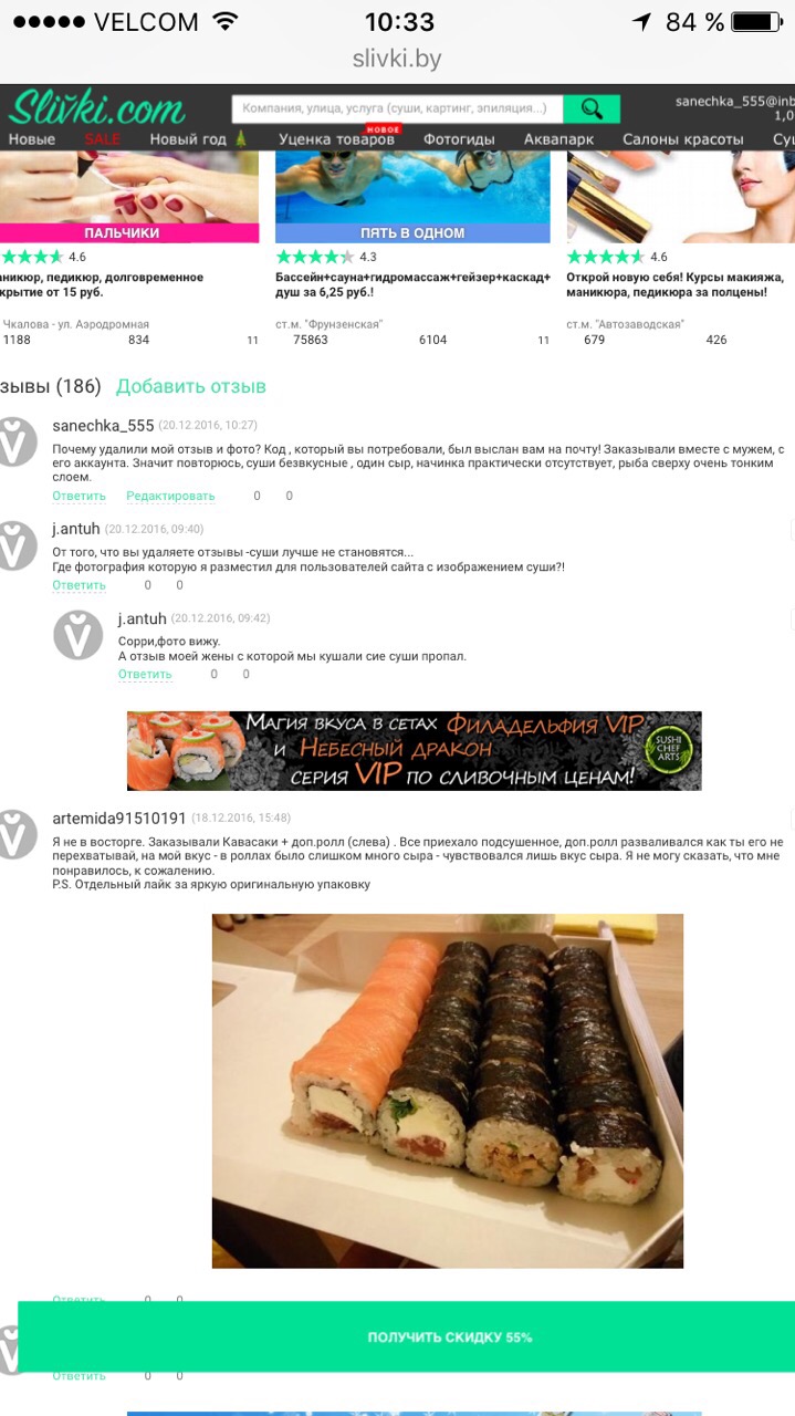 Брали три вида роллов. Все очень вкусно:) И скидка порадовала! Спасибо