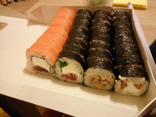 Я не в восторге. Заказывали Кавасаки + доп.ролл (слева) . Все приехало подсушенное, доп.ролл разваливался как ты его не перехватывай, на мой вкус - в роллах было слишком много сыра - чувствовался лишь вкус сыра. Я не могу сказать, что мне понравилось, к сожалению.