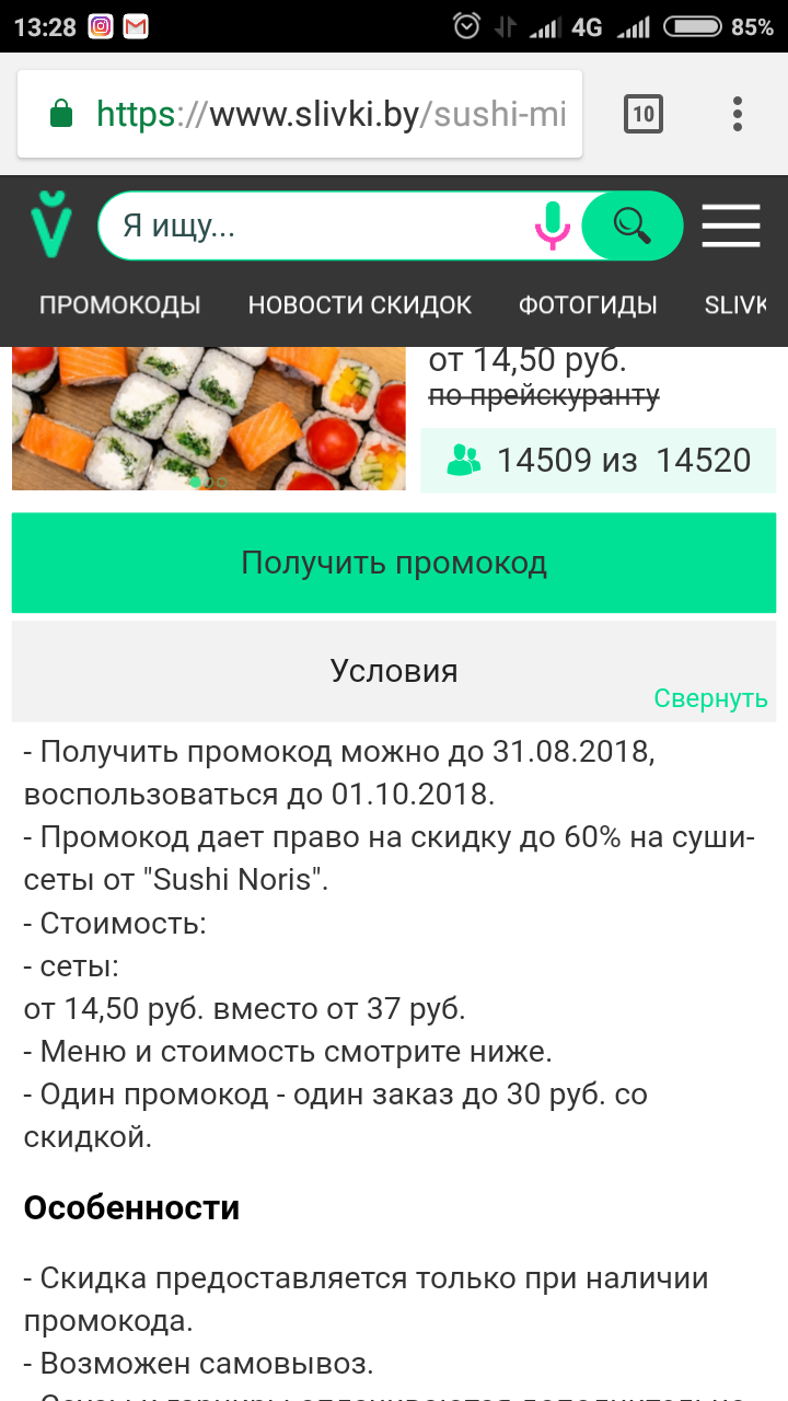 Промокоды действуют исключительно при заказе на slivki.by . Нам сайт представляет  другое меню и акции.