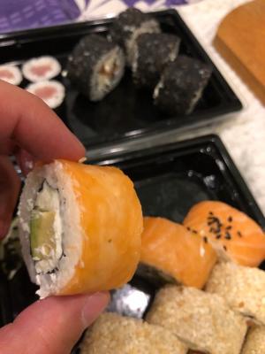 После долгого перерыва решили снова попробовать заказать у вас. В прошлый раз проблема была в отсутствии рыбы и полнейшей разваливаемости, безвкусице. В этот раз с этим лучше. Рыба была, не везде много, но все же. Авокадо твердый и безвкусный. В ролле бонито не было стружки тунца, могли бы и предупредить о замене ингредиента. Доставка была быстрая, но как и всегда у курьера нет сдачи. Никакой. Вообще. Честно говоря, с ностальгией вспоминаю качество ваших суши год назад, вот тогда они были классные. А теперь - как в любой кулинарии гипера...