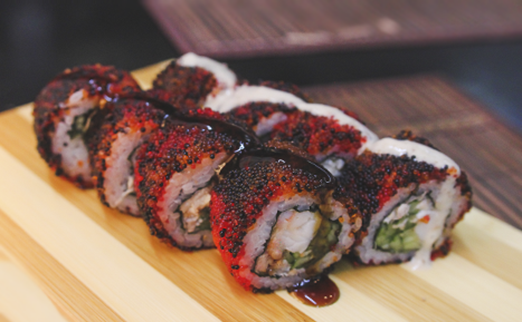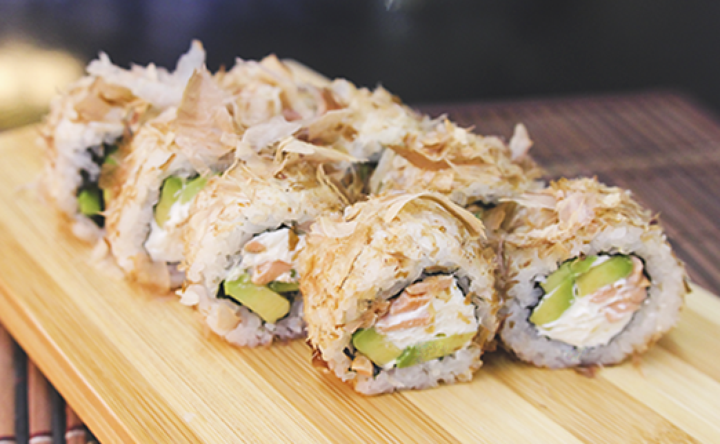 - рис, сыр, огурец, перец, тобико, окунь опаленный
