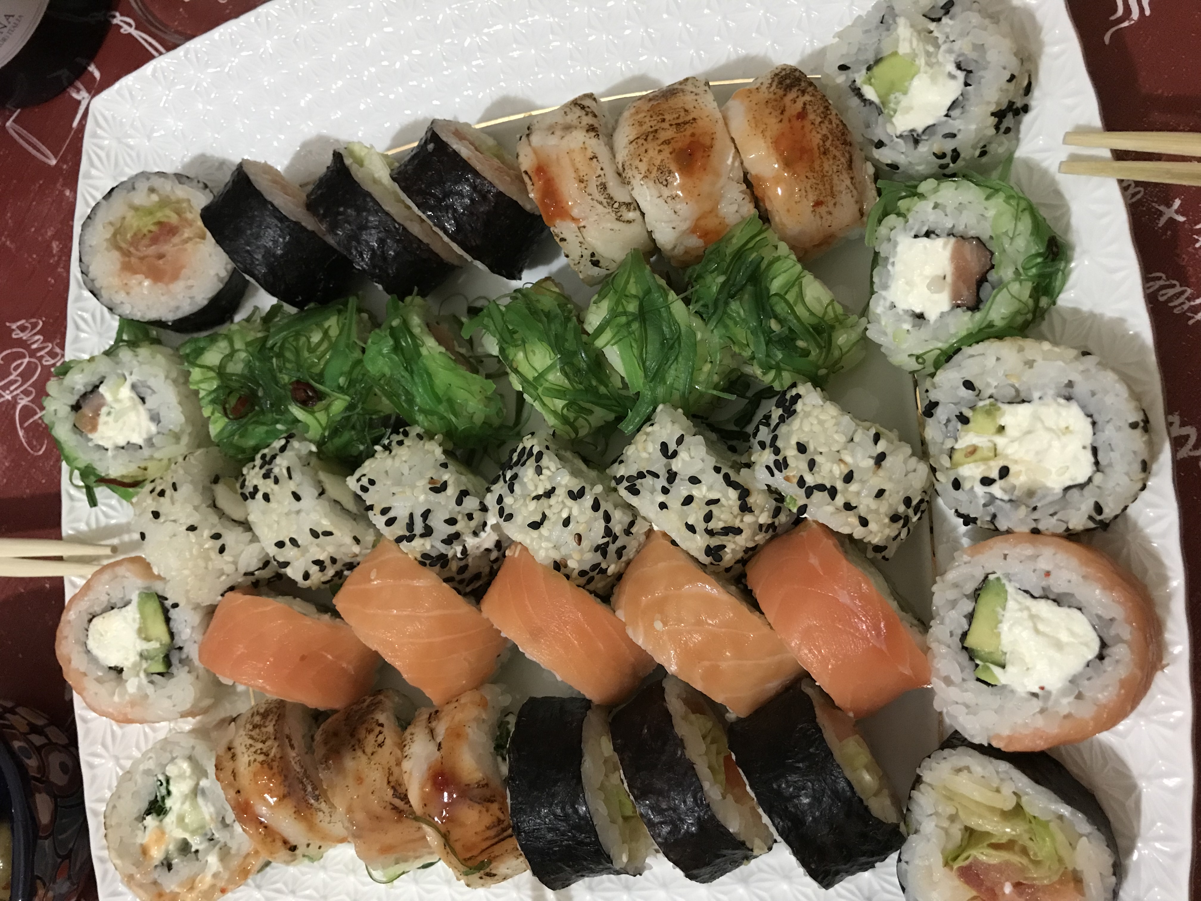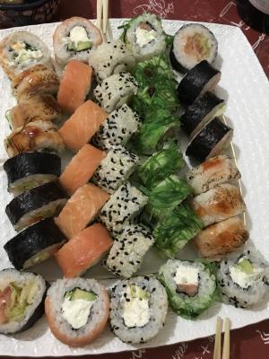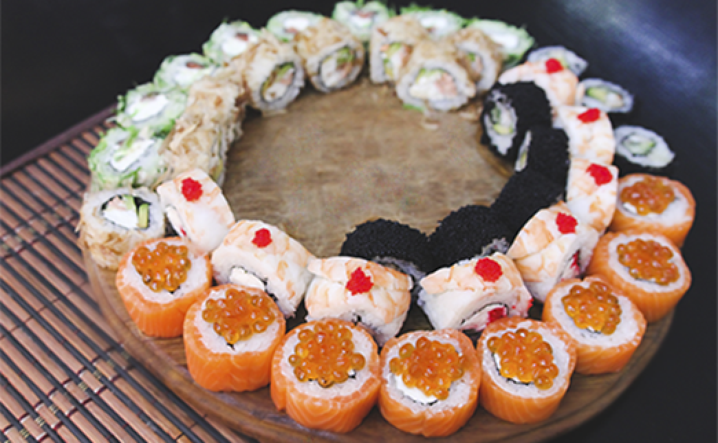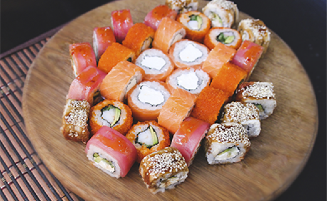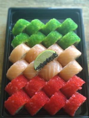 - рис, сыр, мидии, терияки, тобика красная и кунжут черн.