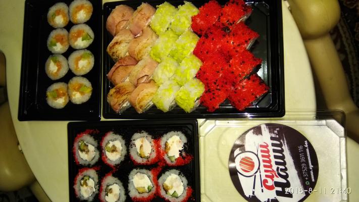 - Промокод дает право на скидку до 50% на суши-сеты и роллы от службы доставки "СушиНаши".