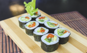 - рис, сыр, авокадо, лосось.