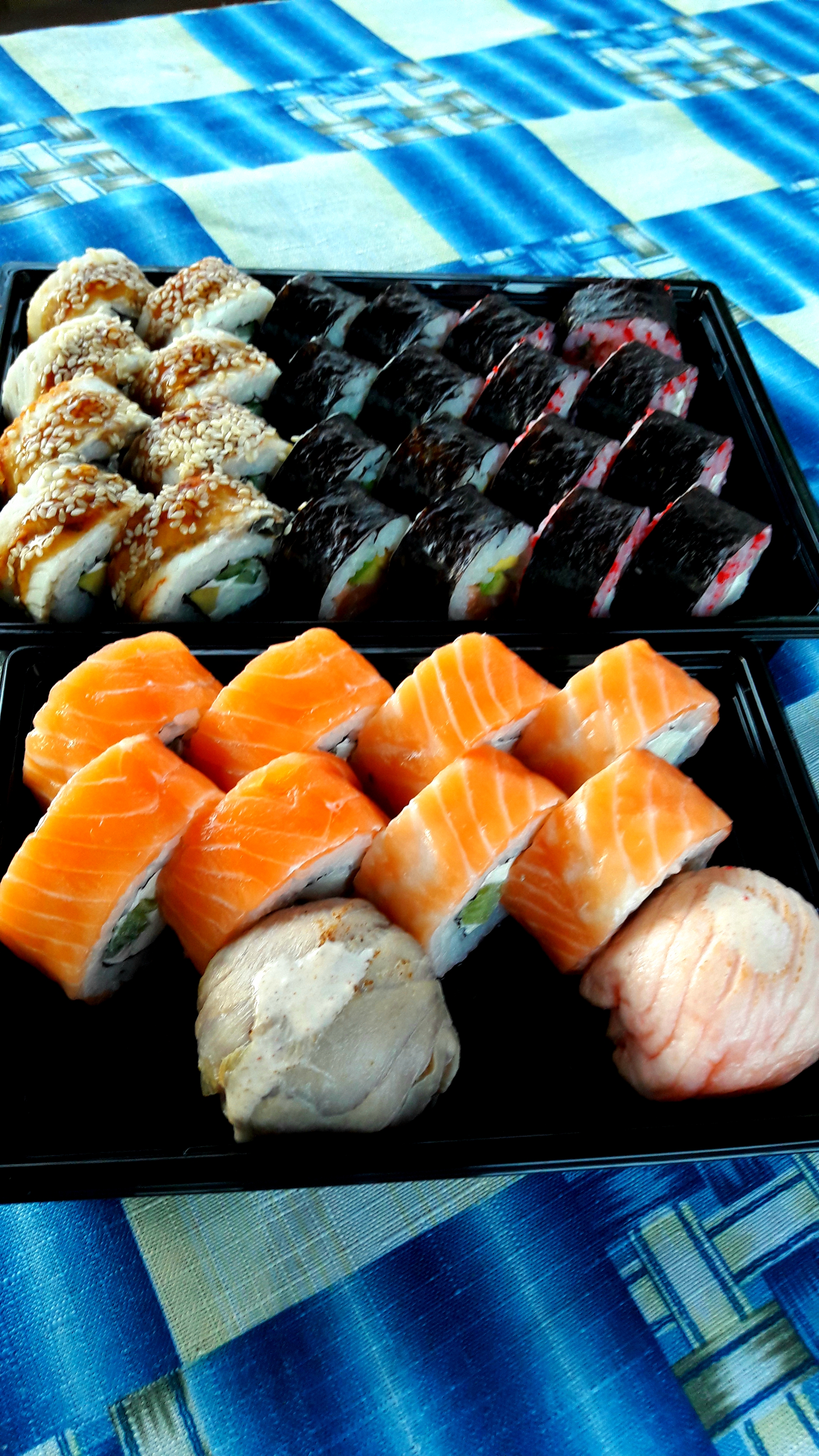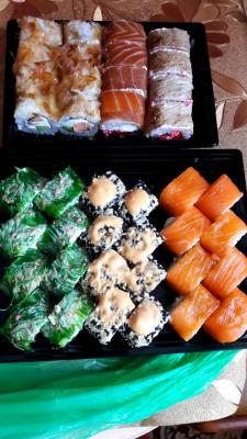 Суши просто супер, свежие, вкусные. Позвонили поздно, попросили доставить до 22:30, курьер молодец доставил раньше. Будем заказывать ещё.