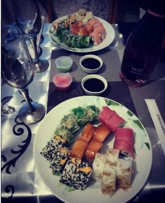 Суши очень свежие и вкусные. Заказывали Сэт "Праздничный" и Ролл "Микадо". Рис качественный, хорошо подготовлен, не кислит, ничего подобного. Сыра в начинке много, мы так любим :) Рол "Микадо" сочный и приятно похрустывает икринками, очень понравился, спасибо. Будем заказывать еще. Доставка в оговоренное время, все обещанные бонусы и даже маленький набор соевый соус+васаби+имбирь ! было очень приятно обнаружить его, за что отдельное спасибо