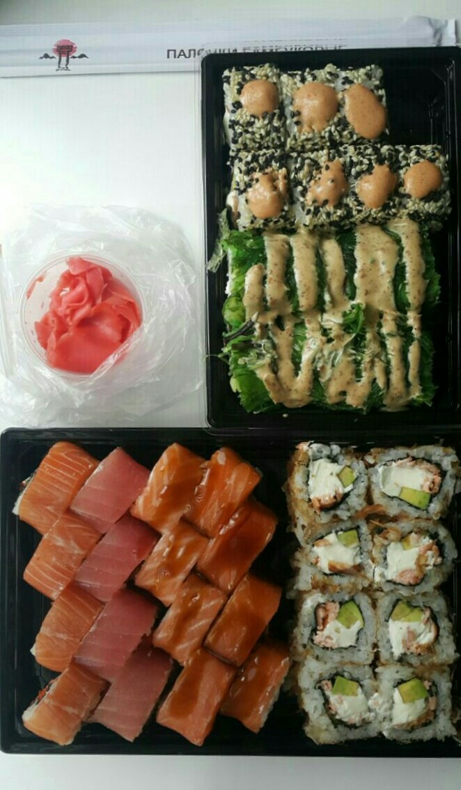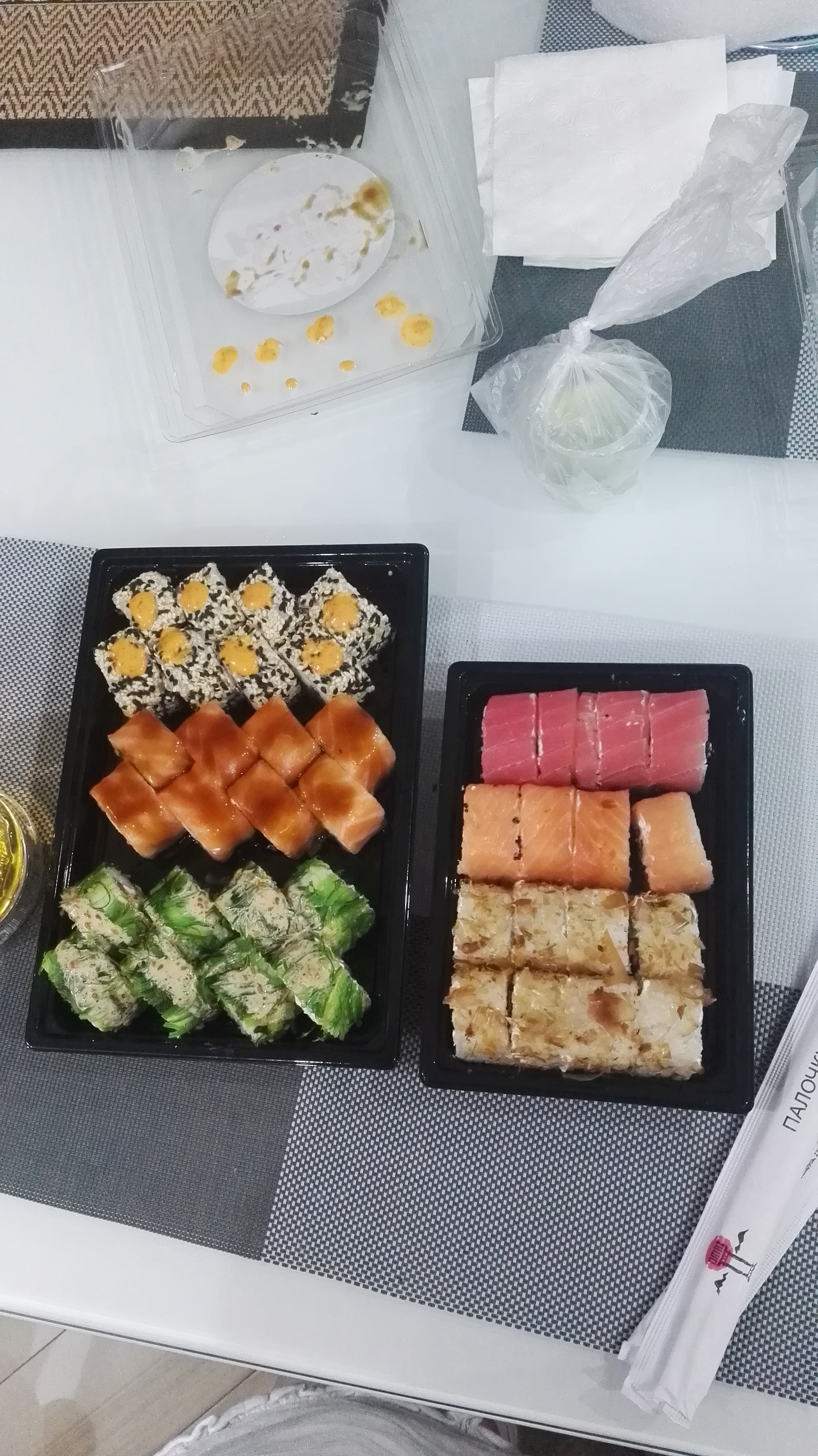 Первый раз заказывали тут суши и не разочаровались!!!Будем заказывать еще!!!