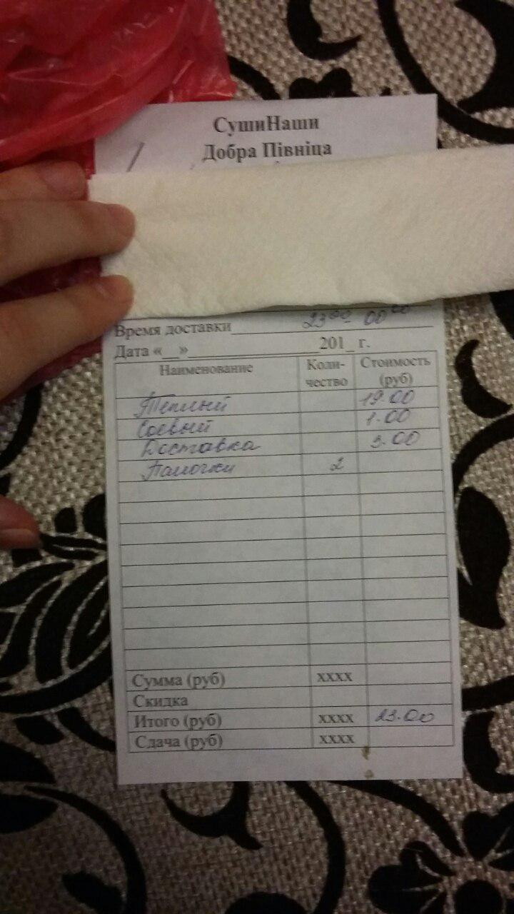 К сожалению позвонить в доставку не удалось, т.к. заказ приехал в 23:30.Все эти но довольно грустные и получается мы остались в проигрыше. Жаль ведь хотелось найти новую доставку
